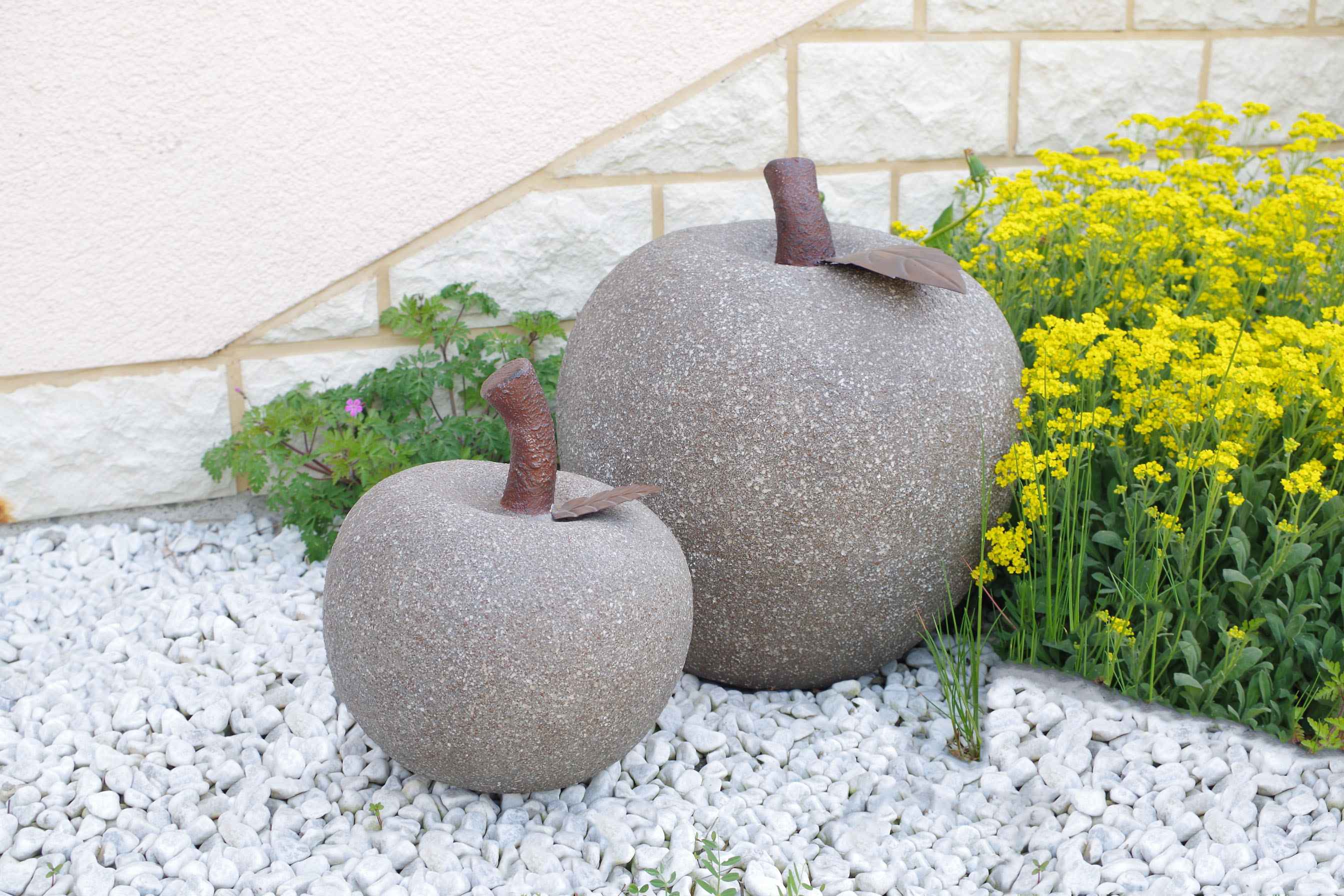 Der Dekoapfel aus robustem Steinguss (Magnesia) mit Metalldekoration von Kobolo ist in jedem Garten ein echter Blickfang. Das Dekoelement hinterlässt in Ihrem Haus, als auch im Garten einen dekorativen Eindruck. Durch die Fertigung aus Magnesia ist der Apfel robust und resistent gegen Witterungseinflüsse.Durchmesser 38cm x Höhe 40cm