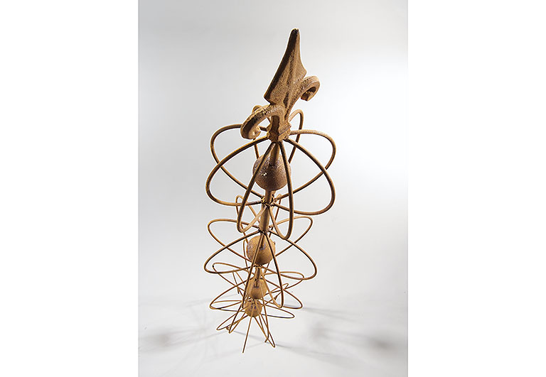 Rankhilfe aus Metall mit Naturrost rund mit 4 Kugeln braun