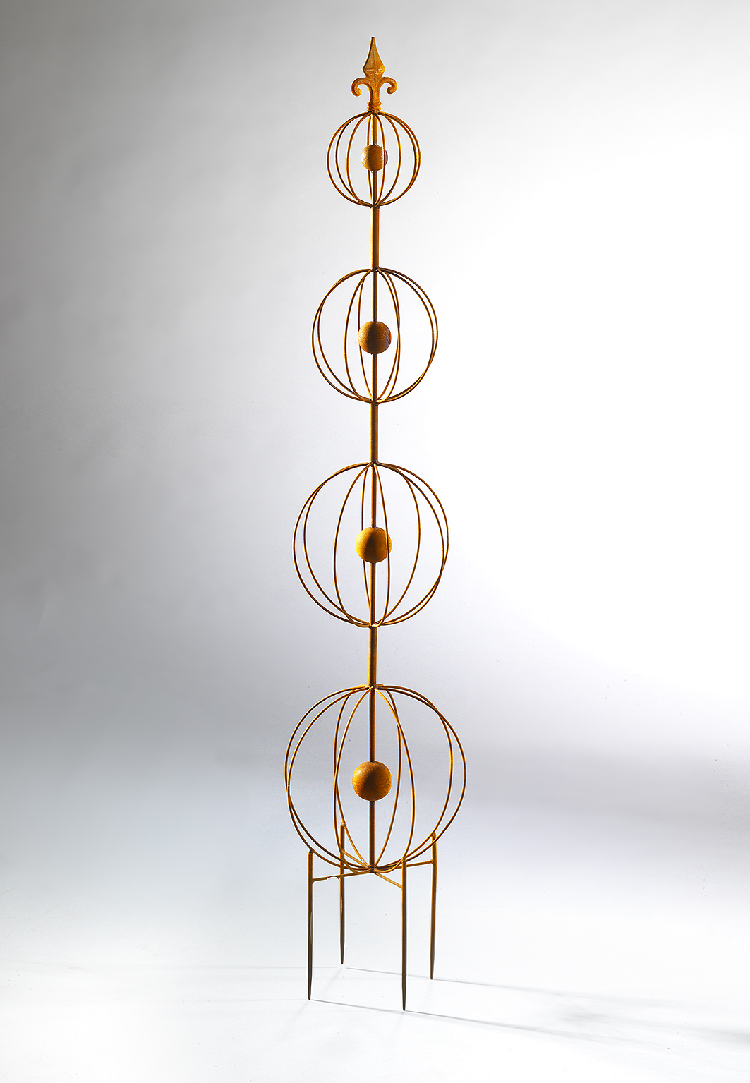 Die Rankhilfe aus naturrostigem Metall von Kobolo unterstützt wunderbar Ihre Pflanzen beim Wachsen und verschönert außerdem durch ihre außergewöhnliche Form und das extravagante Design Ihren Garten.Durchmesser 29cm x Höhe 145cm
