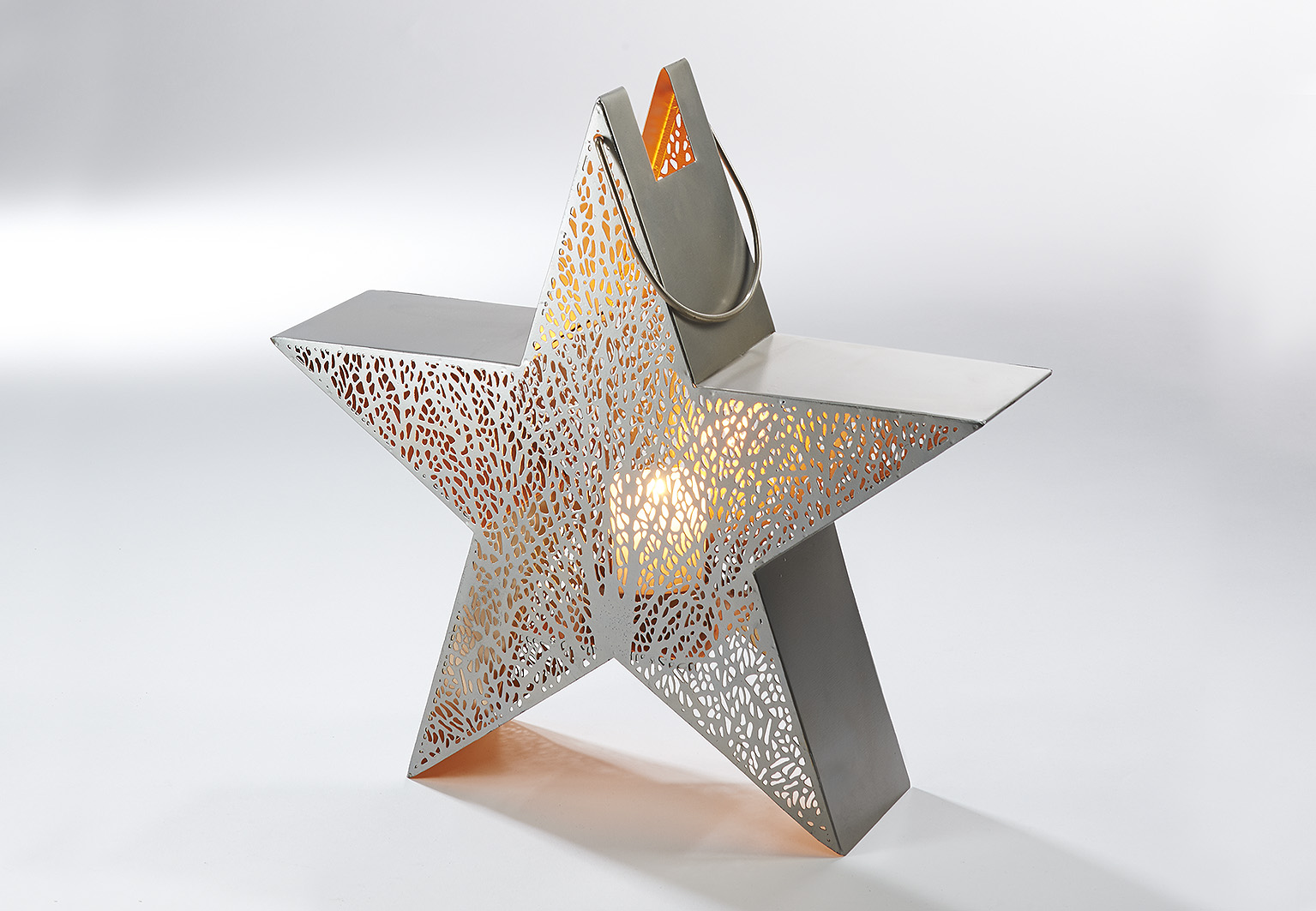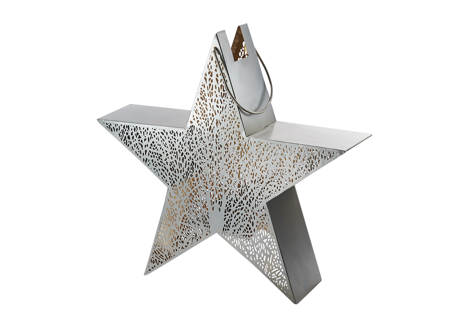 Startseite » Garten » Laternen » Laterne STERN mit filigranem Blattmuster Metall silber/gold L ohne Deko