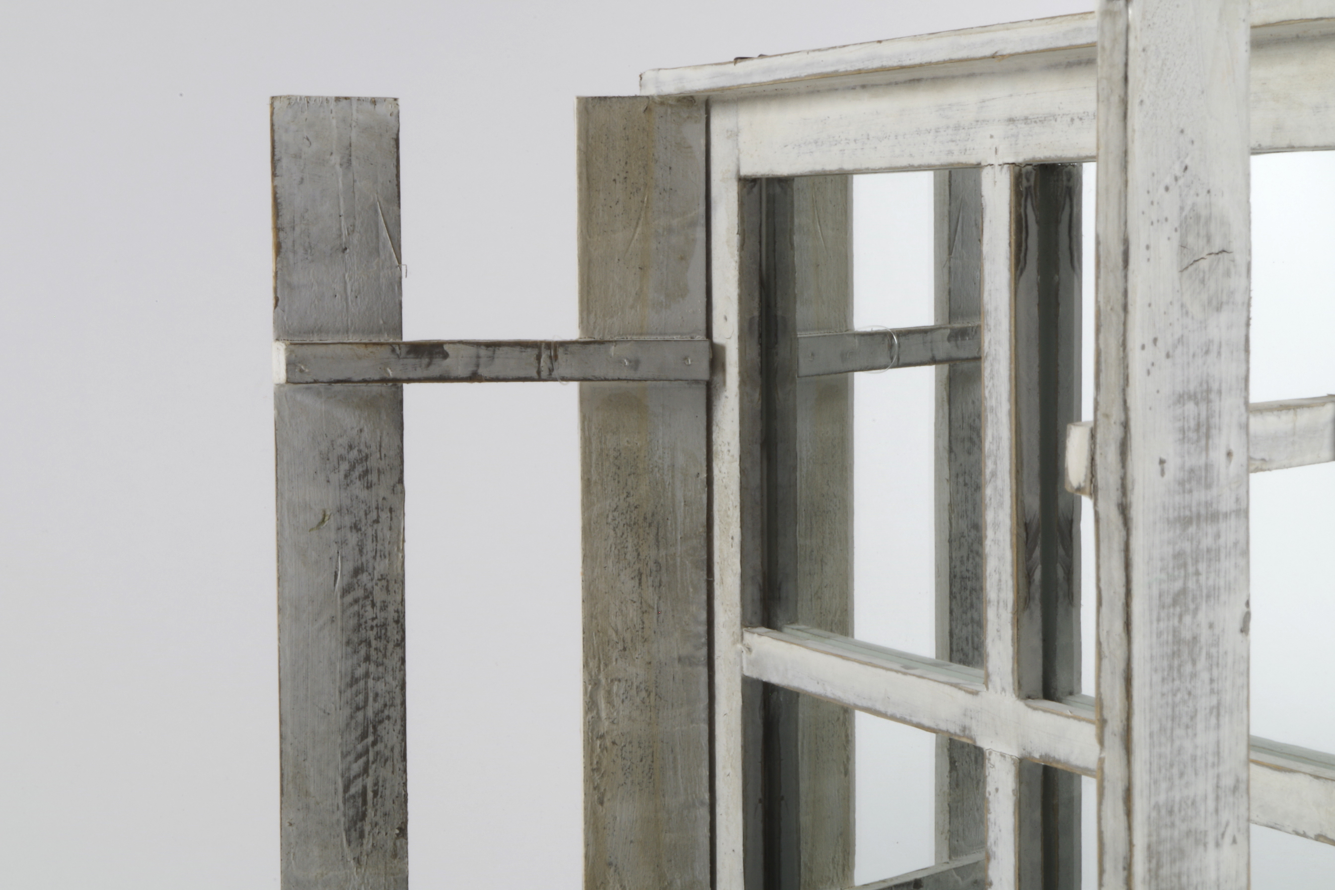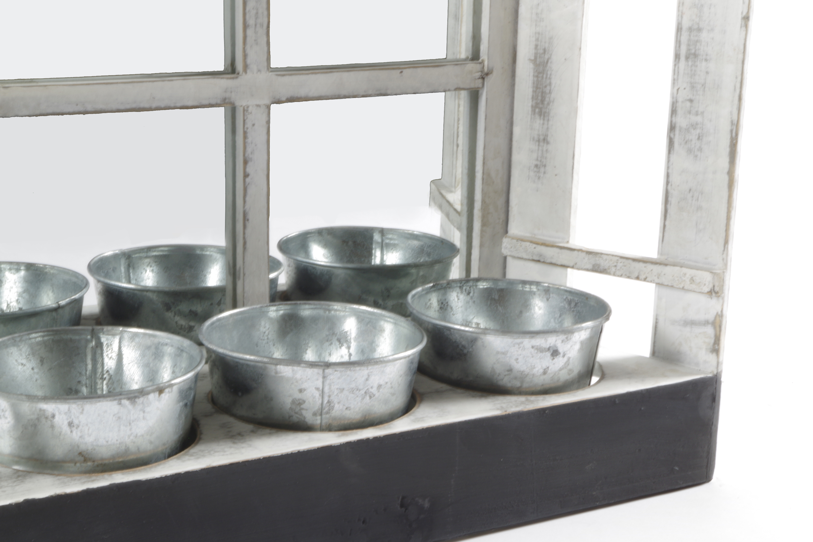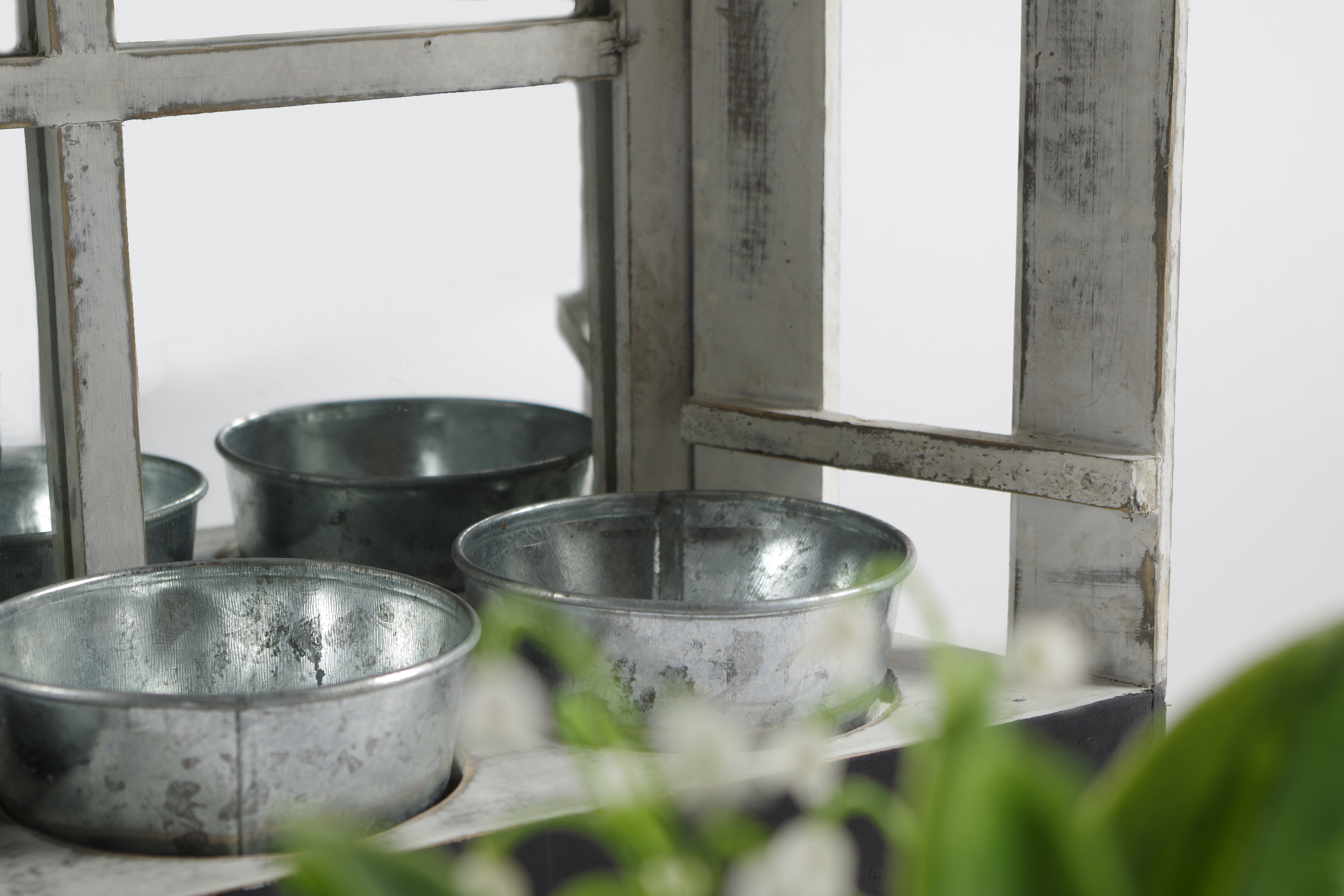 Deko-Fenster für Blumentöpfe aus Holz mit Spiegeln in weiß 35 cm lang
