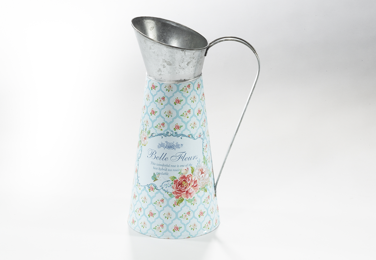 Diese dekorative Kanne aus Zinkblech, mit modernem Blumendesign von Kobolo sorgt für stimmungsvolles Ambiente in Ihrem Zuhause. Mit Blumen bestückt auch als individuelles Geschenk ein echtes Highlight. Ein wahrer Hingucker für Haus und überdachten Gartenbereich.Durchmesser 14cm x Höhe 33cm