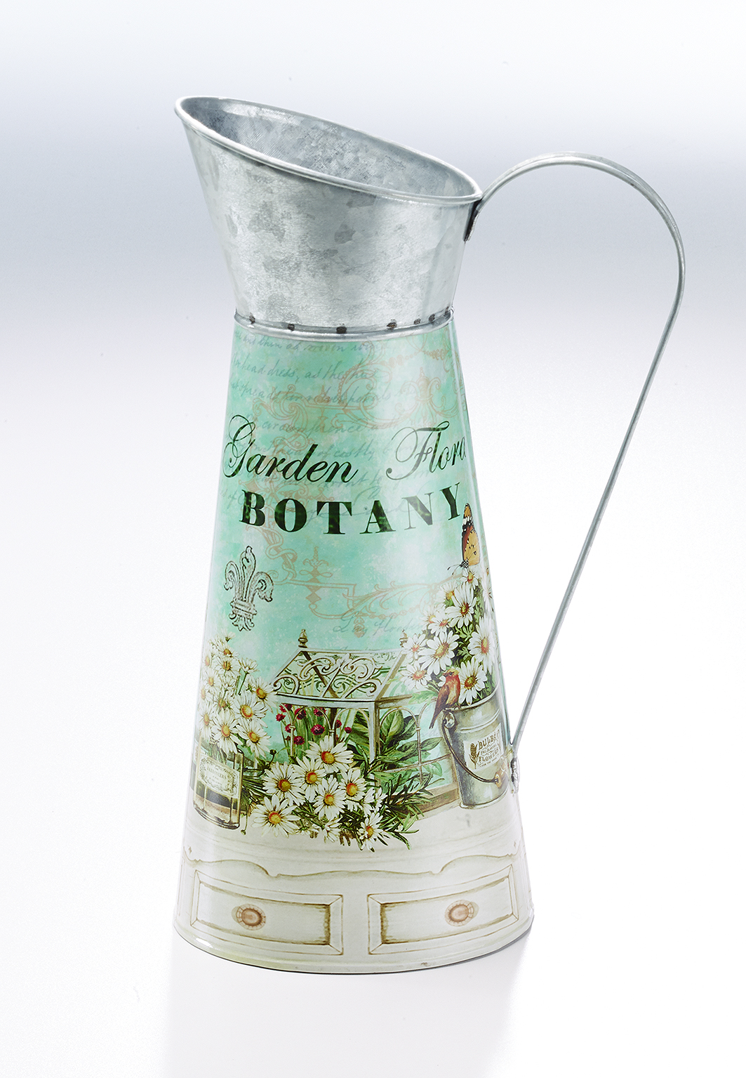 Dieser dekorative Krug aus Zinkblech, mit modernem Blumendesign von Kobolo sorgt für stimmungsvolles Ambiente auf jeder Fensterbank. Mit Blumen bestückt auch als individuelles Geschenk ein echtes Highlight. Ein wahrer Hingucker für Haus und überdachten Gartenbereich.Durchmesser 14cm x Höhe 33cm