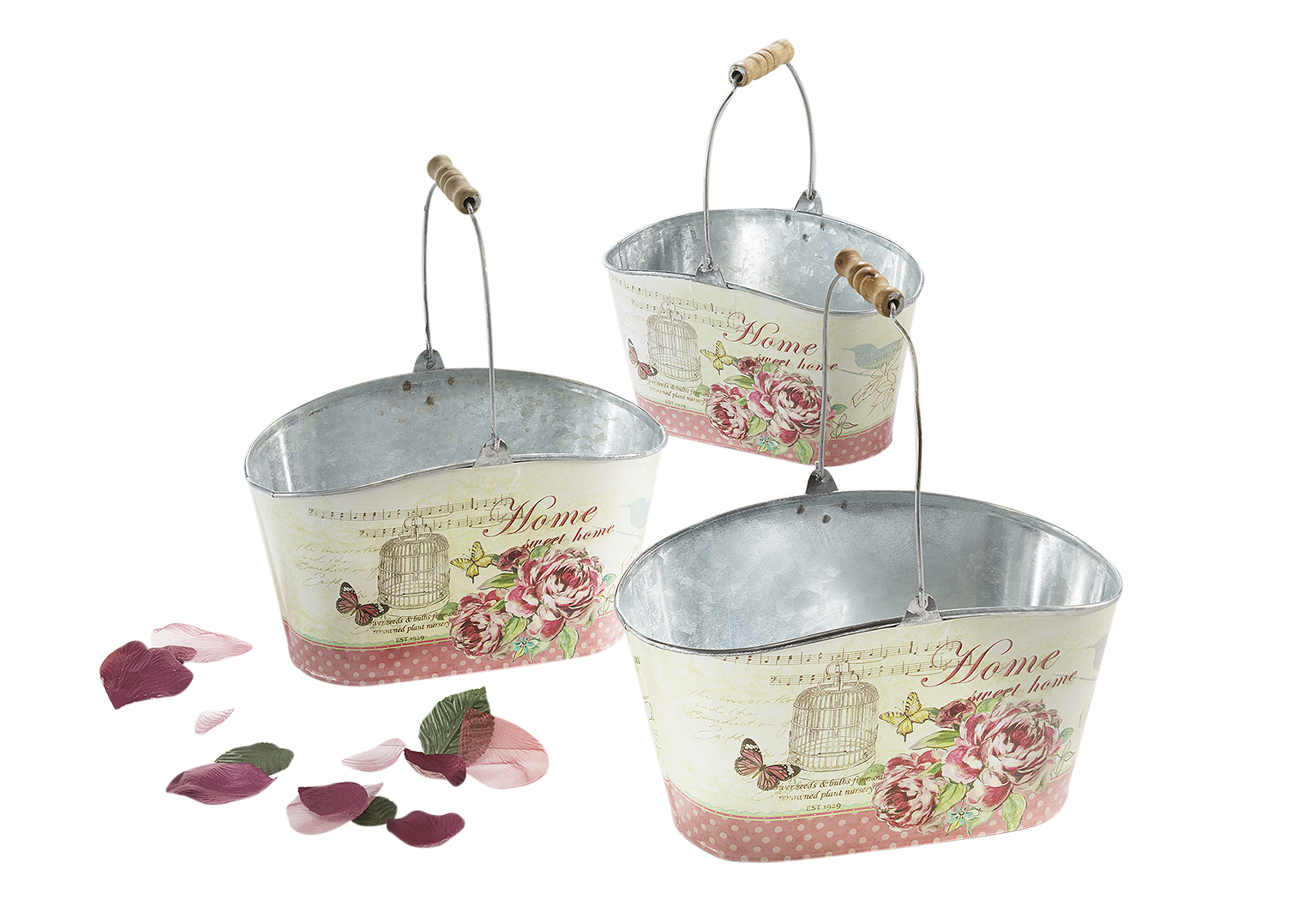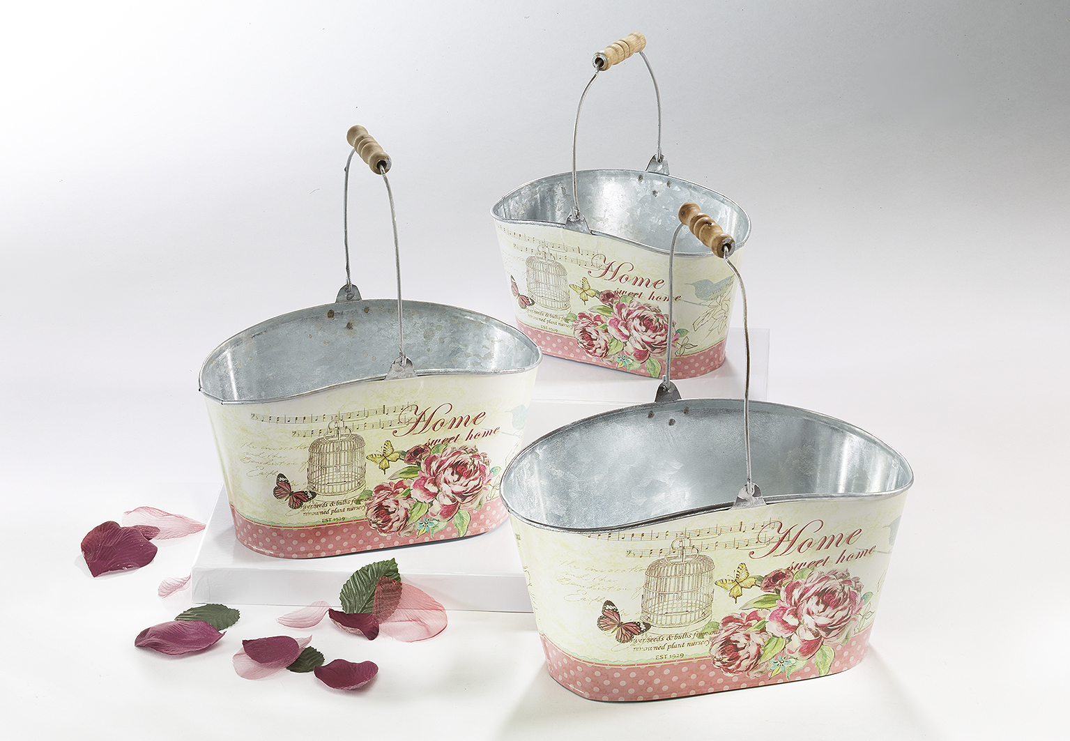 Dieses dekorative Übertopf-Set aus Zinkblech, mit modernem Rosendesign von Kobolo, sorgt für stimmungsvolles Ambiente auf jeder Fensterbank. Es enthält für jede Gelegenheit die passende Größe. Mit Blumen bestückt auch als individuelles Geschenk ein echtes Highlight. Ein wahrer Hingucker für Haus und überdachten Gartenbereich. Maße Ca.Gr1 20cm x 13cm x 12cm , Gr2 23cm x 15cm x 13cm , Gr3 28cm x 17cm x 15cm