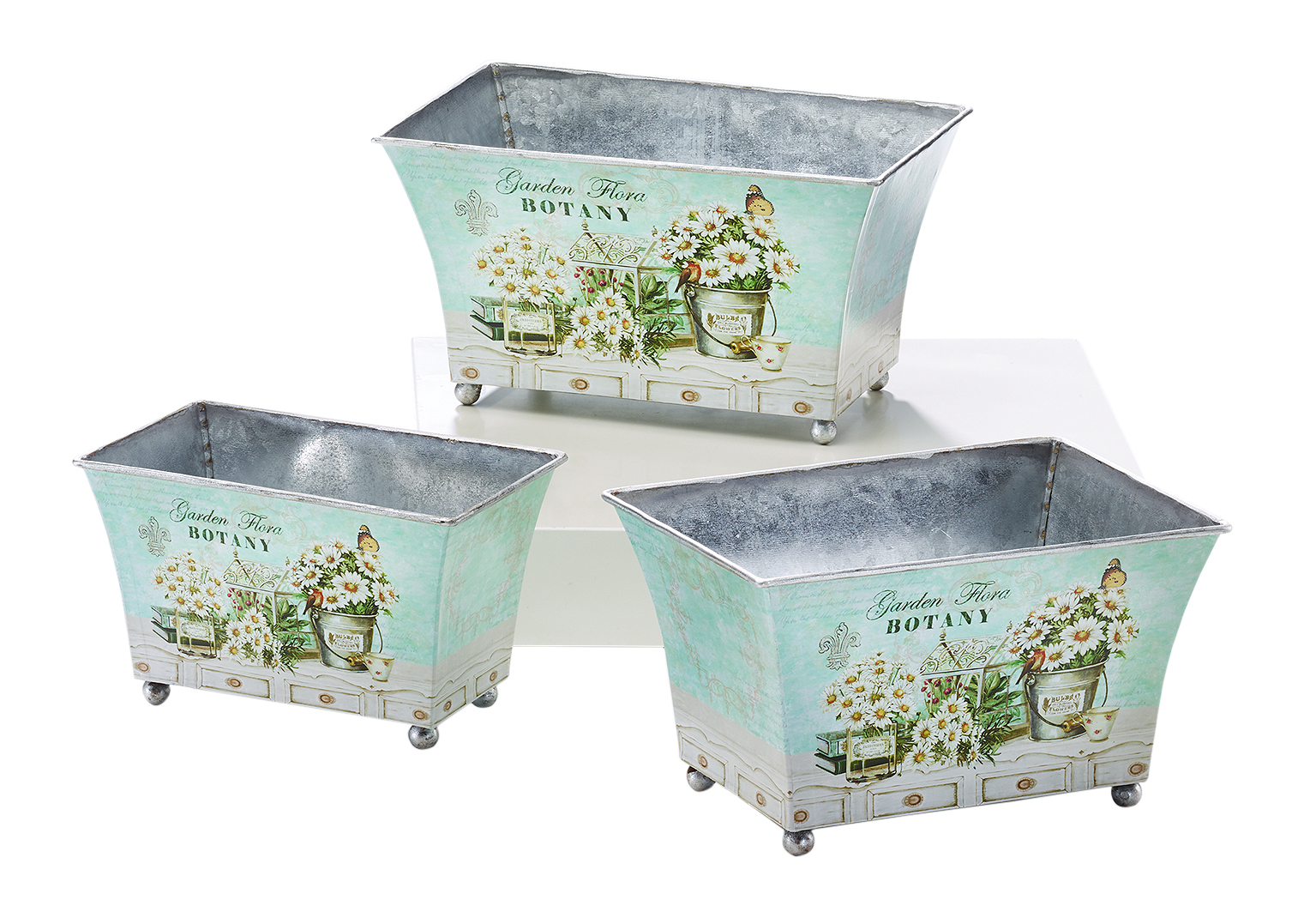 Deko-Pflanzschale rechteckig aus Metall Blumendekor S/3