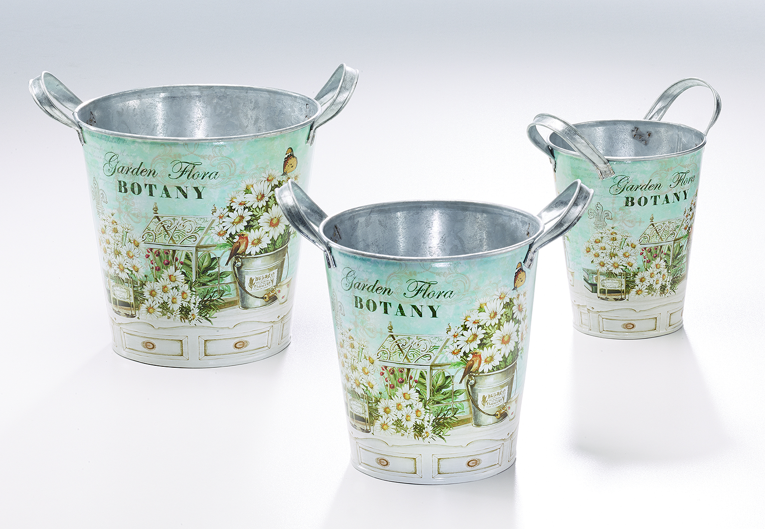 Dieses dekorative Pflanzschalen-Set aus Zinkblech, oval mit modernem Blumendekor von Kobolo, sorgt für stimmungsvolles Ambiente auf jeder Fensterbank. Zusätzlich verfügt es über zwei Tragegriffe und für jede Gelegenheit die passende Größe. Mit Blumen bestückt auch als individuelles Geschenk ein echtes Highlight. Ein wahrer Hingucker für Haus und überdachten Gartenbereich. Maße Ca.Gr1 Ø12cm x Höhe 14cm , Gr2 Ø15cm x Höhe 16cm , Gr3 Ø18cm x Höhe 17cm