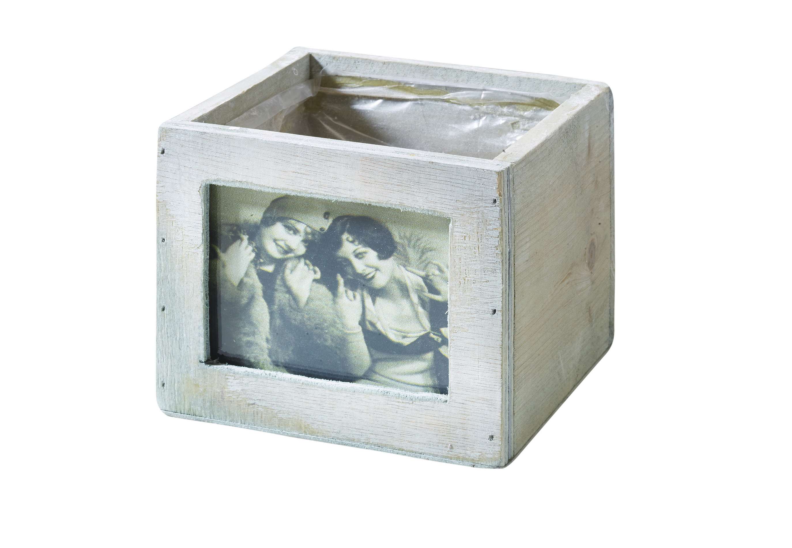 Die Pflanzschale aus Holz von Kobolo im angesagten Vintage-Look ist mit Folie ausgeschlagen und eignet sich hervorragend zum Bepflanzen. Durch die Möglichkeit das Frontbild auszuwechseln verleihen Sie dem Artikel einen individuellen Charakter. Länge 11cm x Breite 11cm x Höhe 9cm