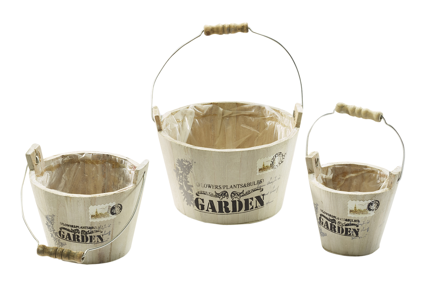 Pflanzeimer aus Holz mit Henkel weiß S/3