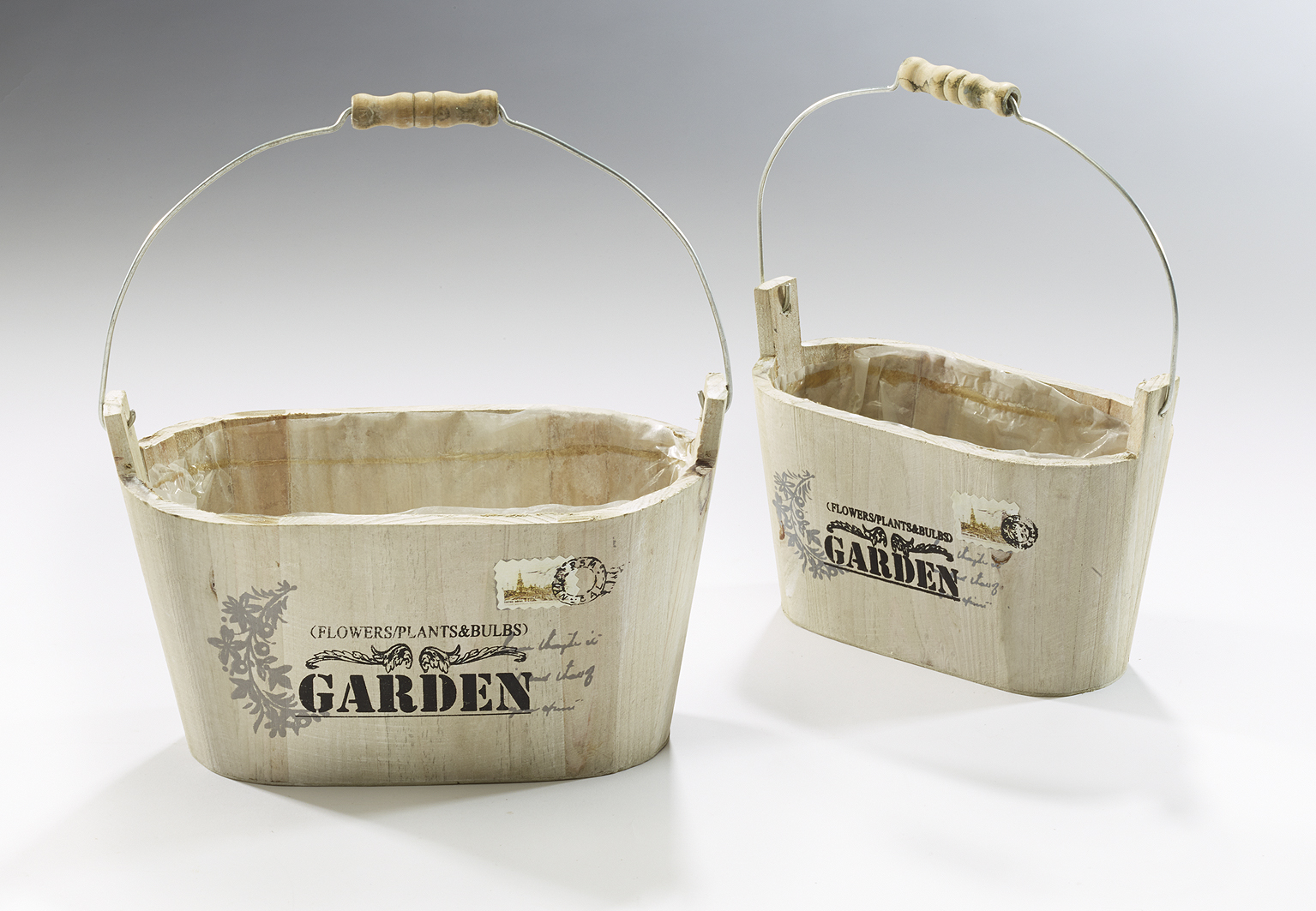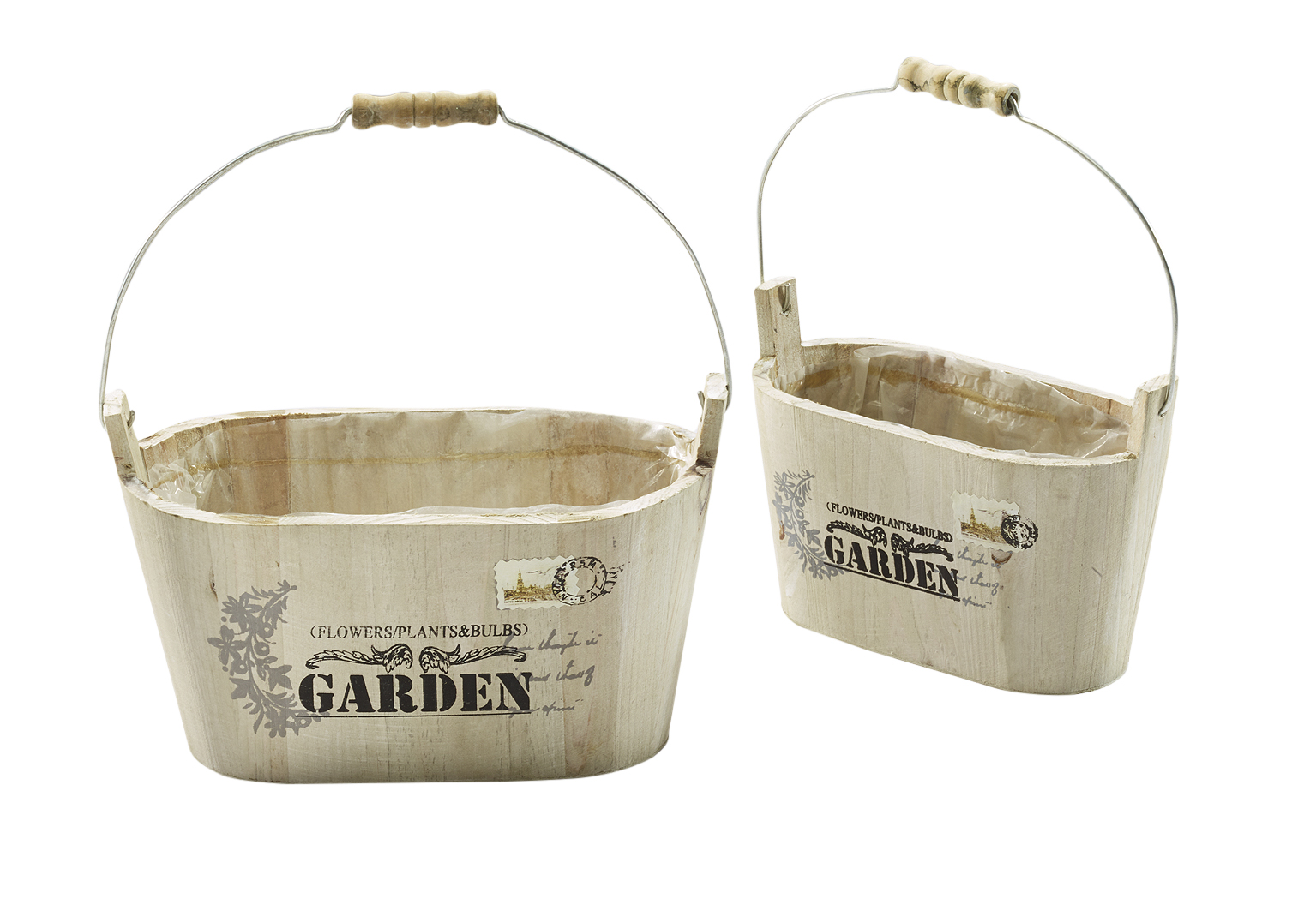 Dekoratives Set bestehend aus zwei bepflanzbaren Holzeimern von Kobolo. Zum Schutz des Holzes sind die Eimerchen innen mit Folie ausgeschlagen. Ein wahrer Hingucker für Haus und überdachten Gartenbereich und das Set beinhaltet für jeden Anlass die richtige Größe. Mit Blumen bepflanzt auch als individuelles Geschenk ein echtes Highlight. Maße Ca.Gr1 20cm x 10cm x 11cm , Gr2 24cm x 14cm x 13cm