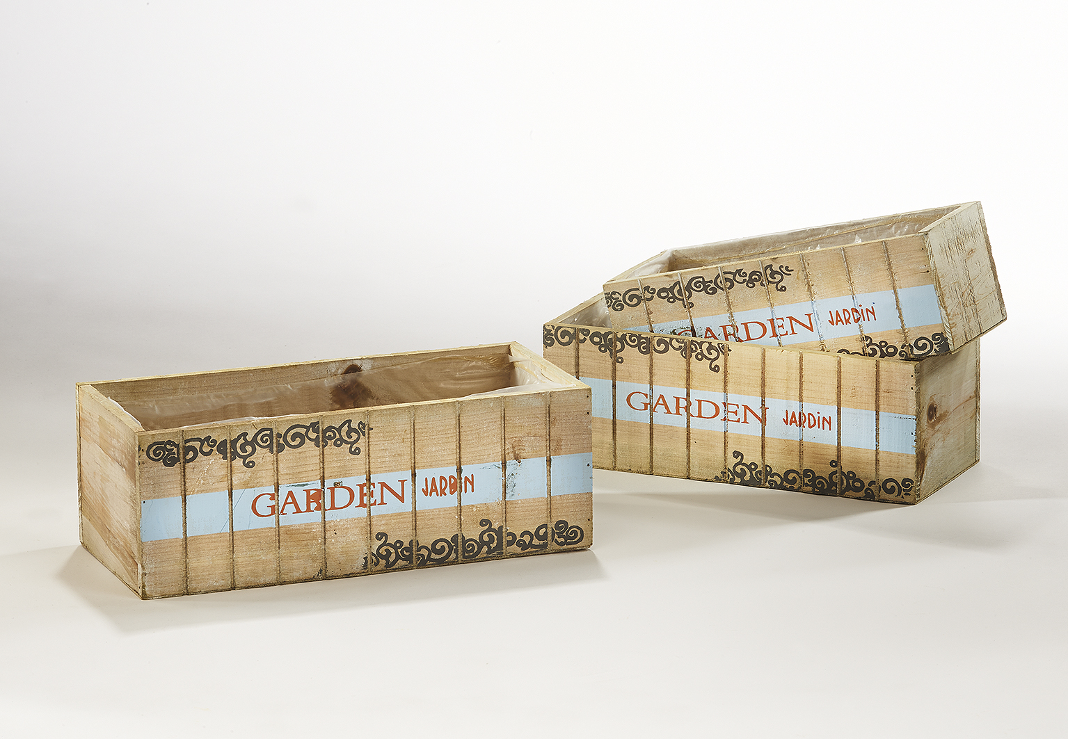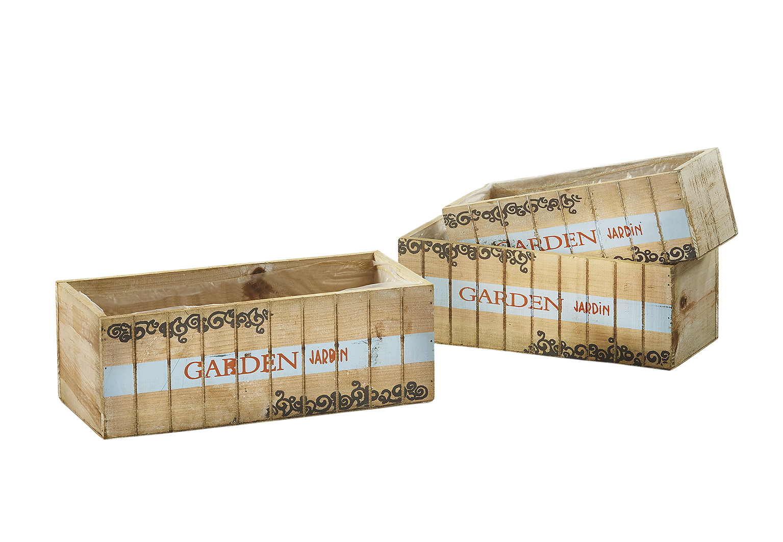 Die rechteckigen Pflanzgefäße im 3er Set von Kobolo sind aus Holz gefertigt und mit Folie ausgeschlagen. In trendigem "white washed" mit hellblauem Dekor, bringen die Übertöpfe aus Holz Ihre Pflanzen wunderbar zur Geltung. Ein wahrer Hingucker für Haus und überdachten Gartenbereich und das Set beinhaltet für jeden Anlass die richtige Größe. Mit Blumen bepflanzt auch als individuelles Geschenk ein echtes Highlight. Maße Ca.Gr1 27cm x 11cm x 9 cm , Gr2 30cm x 13cm x 11cm , Gr3 34cm x 15cm x 12cm