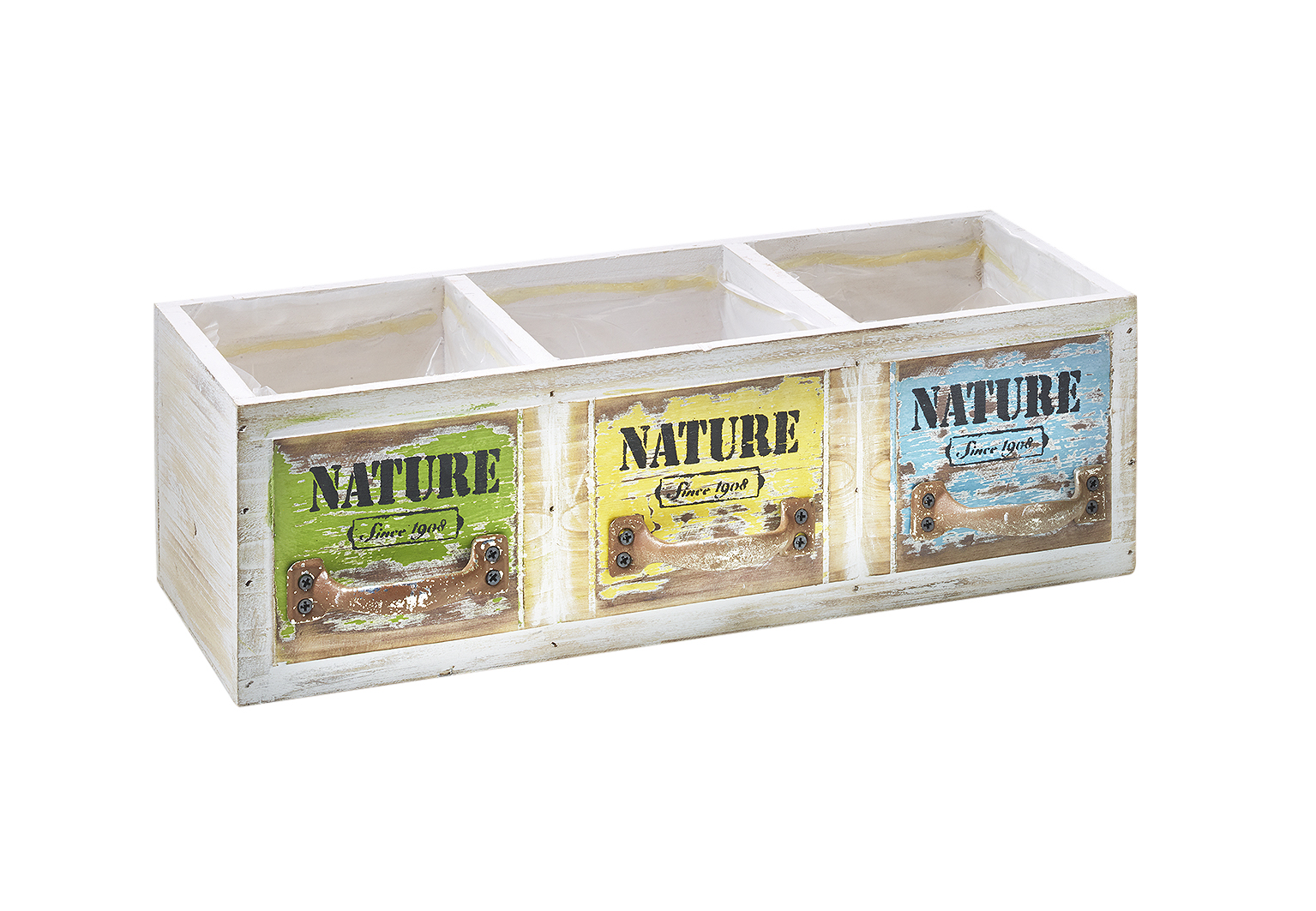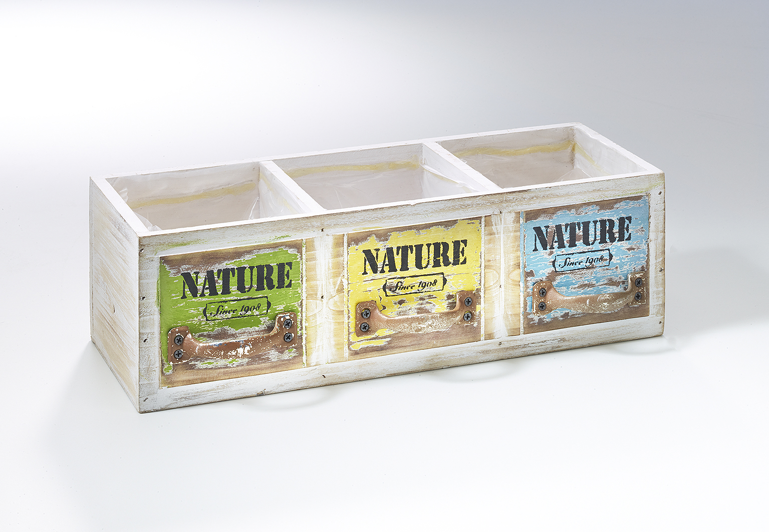 Die Pflanzschale aus Holz von Kobolo im Vintage-Look ist mit Folie ausgeschlagen und eignet sich hervorragend zum Bepflanzen. Die außergewöhnliche Schubladenform in zartem Pastell welche dreigeteilt ist wird Sie begeistern und das Highlight jeder Dekoration sein. Länge 34cm x Breite 12cm x Höhe 10cm