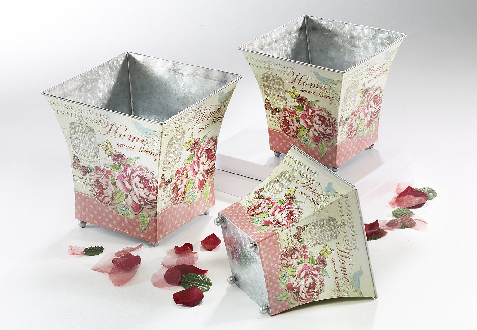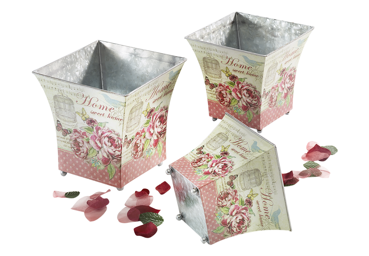 Dieses dekorative quadratische Übertopf-Set aus Zinkblech, mit modernem Rosendesign von Kobolo, sorgt für stimmungsvolles Ambiente auf jeder Fensterbank. Es enthält für jede Gelegenheit die passende Größe. Nur lieferbar wie abgebildet. Set besteht aus: Gr1 Länge 17 cm Breite 17 cm Höhe1 17 cmGr2 Länge 20 cm Breite 20 cm Höhe1 20 cm Gr3 Länge 23 cm Breite 23 cm Höhe1 23 cm Maße Ca.Gr1 17cm x 17cm x 17cm , Gr2 20cm x 20cm x 20cm , Gr3 23cm x 23cm x 23cm
