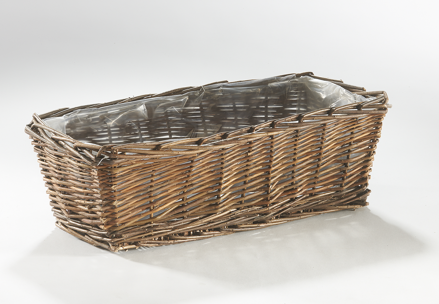 Pflanzgefäß rechteckig ungeschälte Weide mit Folie ausgechlagen