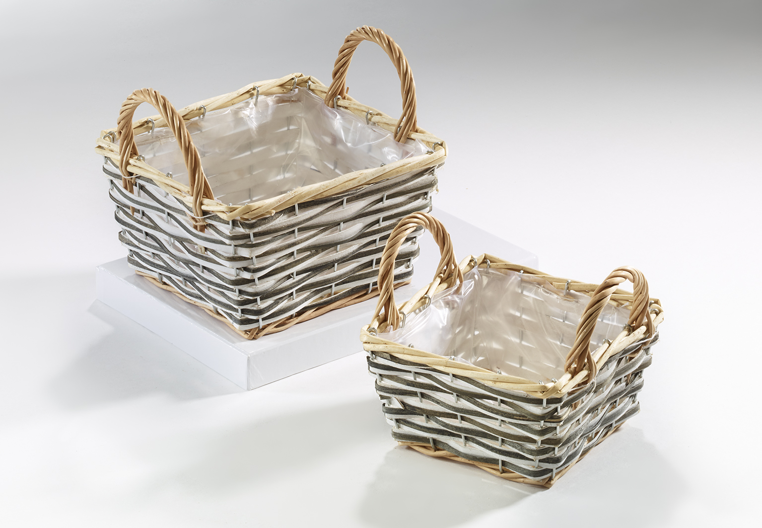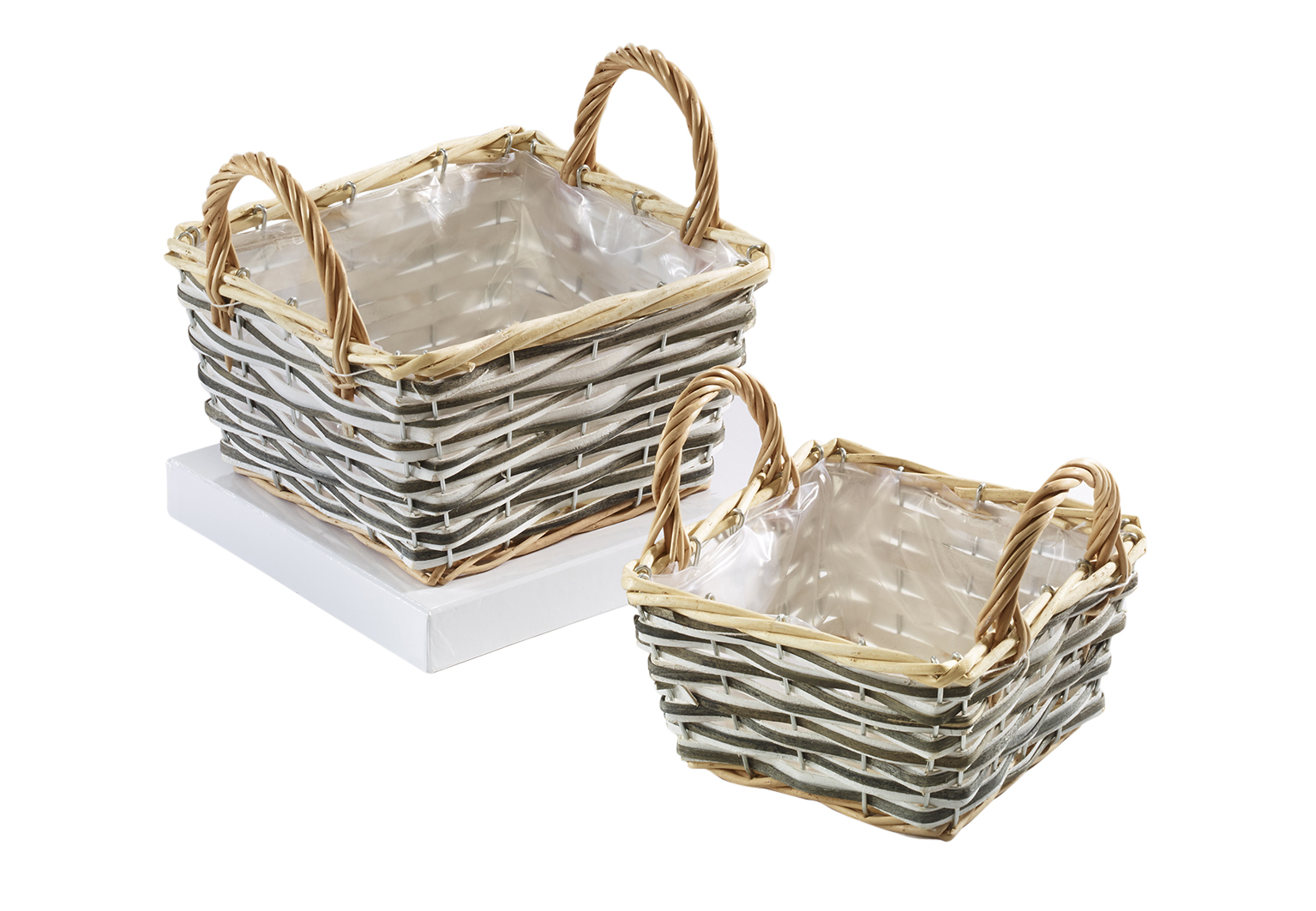 Pflanzschale aus Weide und Chipwood m. Folie ausgeschlagen S/2