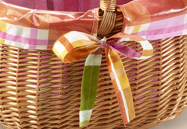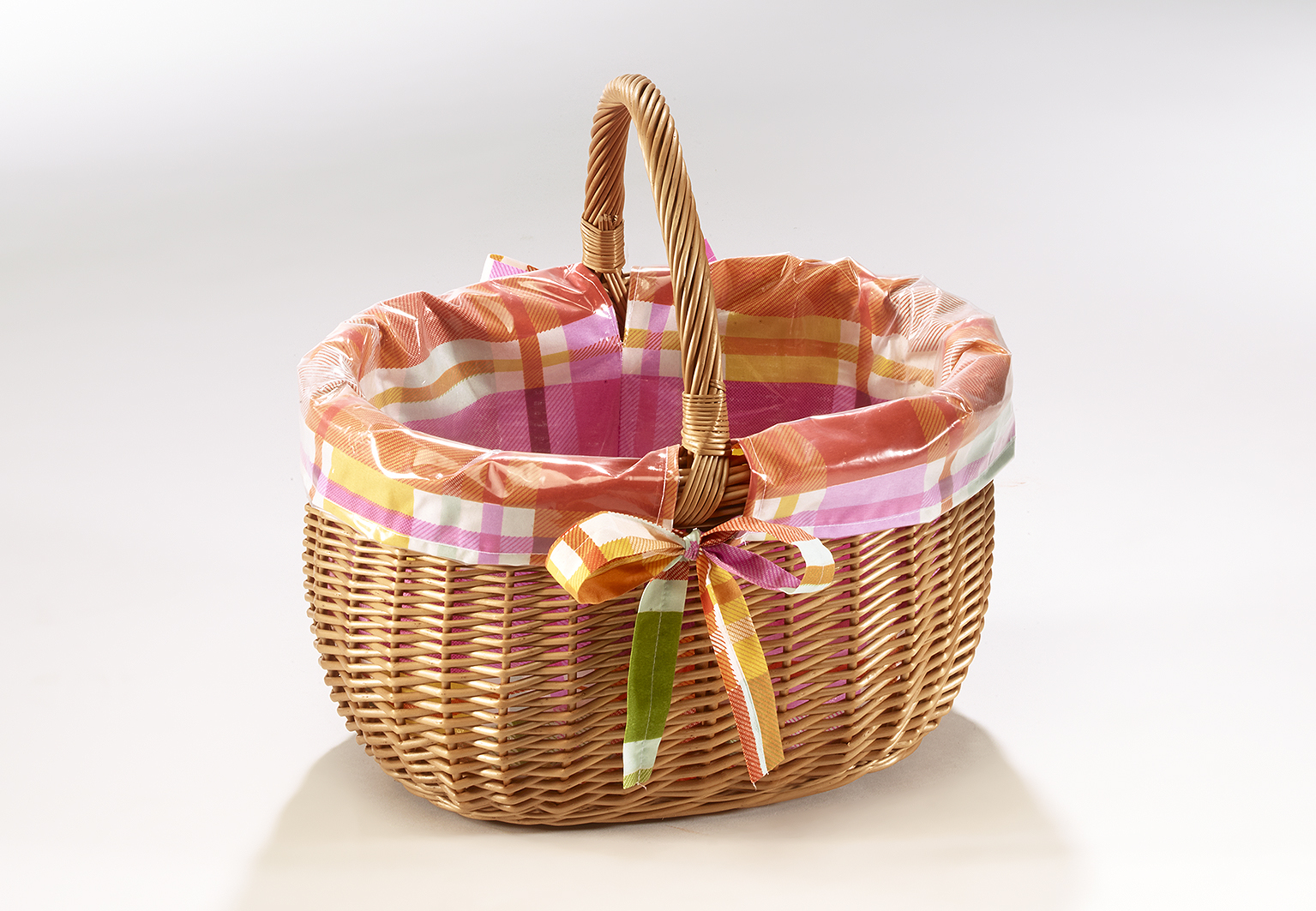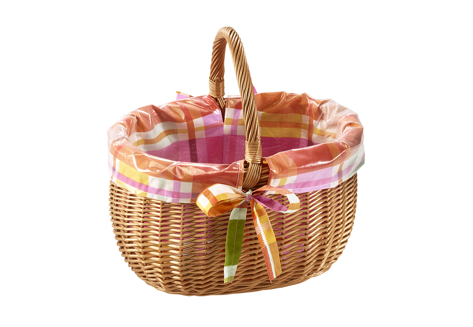 Nützlicher Einkaufskorb aus Weide von Kobolo. Dieser Korb wurde in liebevoller Handarbeit aus Weide geflochten. Er ist mit einem bunten Stoff und abwischbarer Folie ausgeschlagen. Der stabile Henkel erleichter das Tragen von zum Beispiel Ihren Einkäufen. Länge 46cm x Breite 36cm x Höhe 23cm