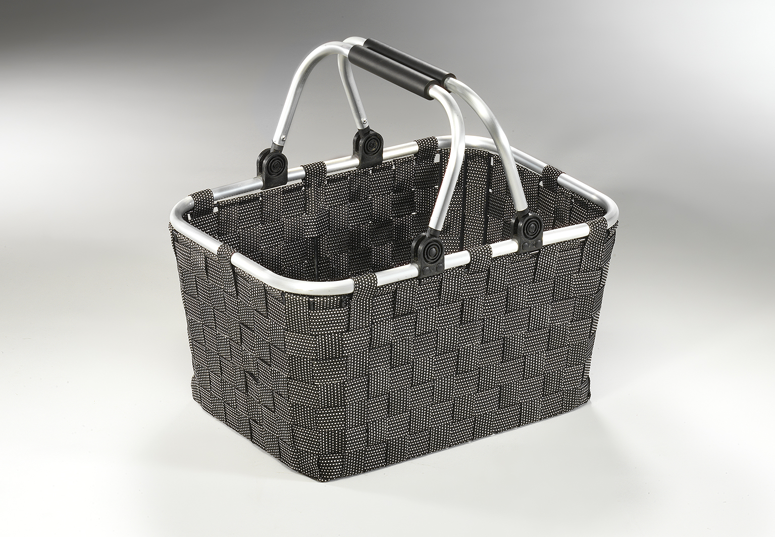 Praktischer und moderner Einkaufskorb in der Farbe black/white von Kobolo. Ein treuer Begleiter bei jedem Einkauf. Erspart Ihnen lästiges Tütenschleppen und -entsorgen. Passt durch den Klappbügel fast überall hinein. Länge 41cm x Breite 29cm x Höhe 21cm