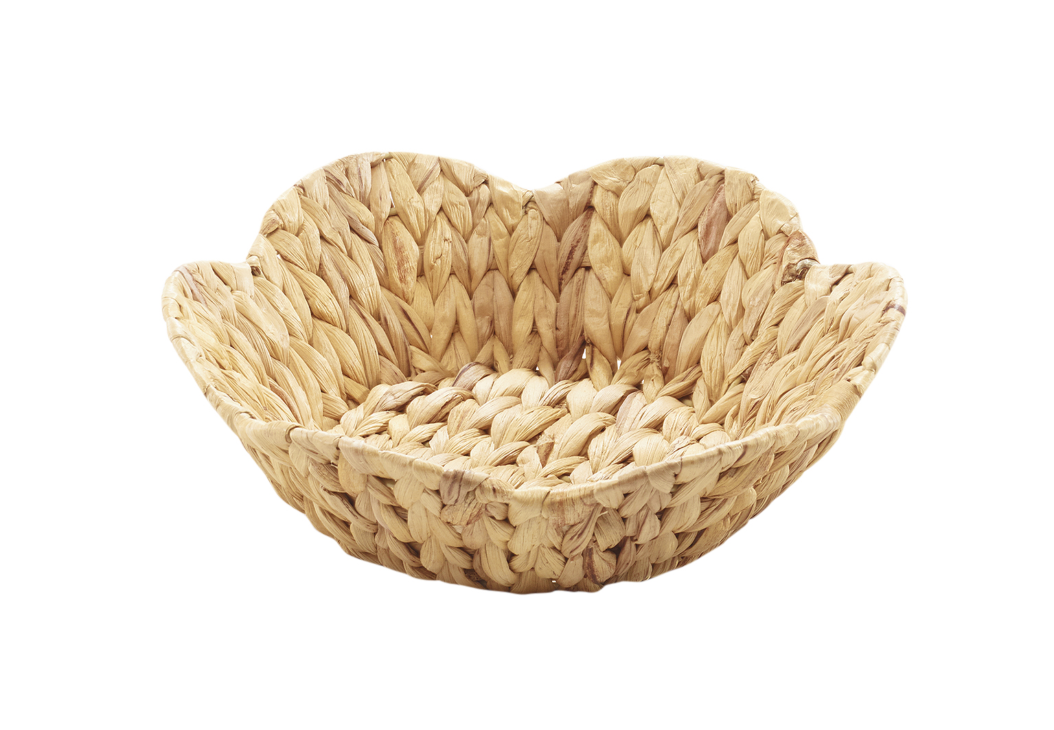 Die runde, kleine Dekoschale von Kobolo ist aus Wasserhyazinthe auf einem Metallgerüst gefertigt und in Form einer Blume gestaltet. In hellen Naturtönen gehalten, verleiht die Flechtschale jedem Ambiente eine harmonische und ansprechende Note.Durchmesser 27cm x Höhe 8cm
