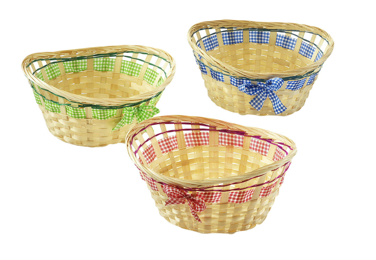 Dekorative Bambuschalen als 3-fach Sortierung von Kobolo. Die naturfarbenen Schalen bestechen durch Bänder in den Farben Rosa, Grün und Blau. Tolle Möglichkeit zur Aufbewahrung. Natürlich auch als Geschenkkörbchen zu gebrauchen.Durchmesser 26cm x Höhe 11cm