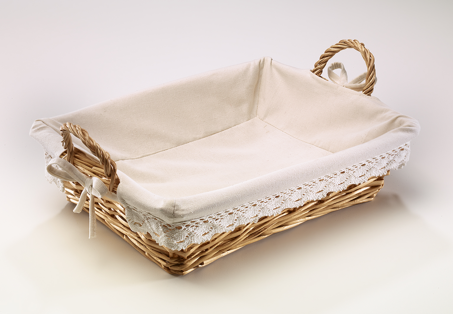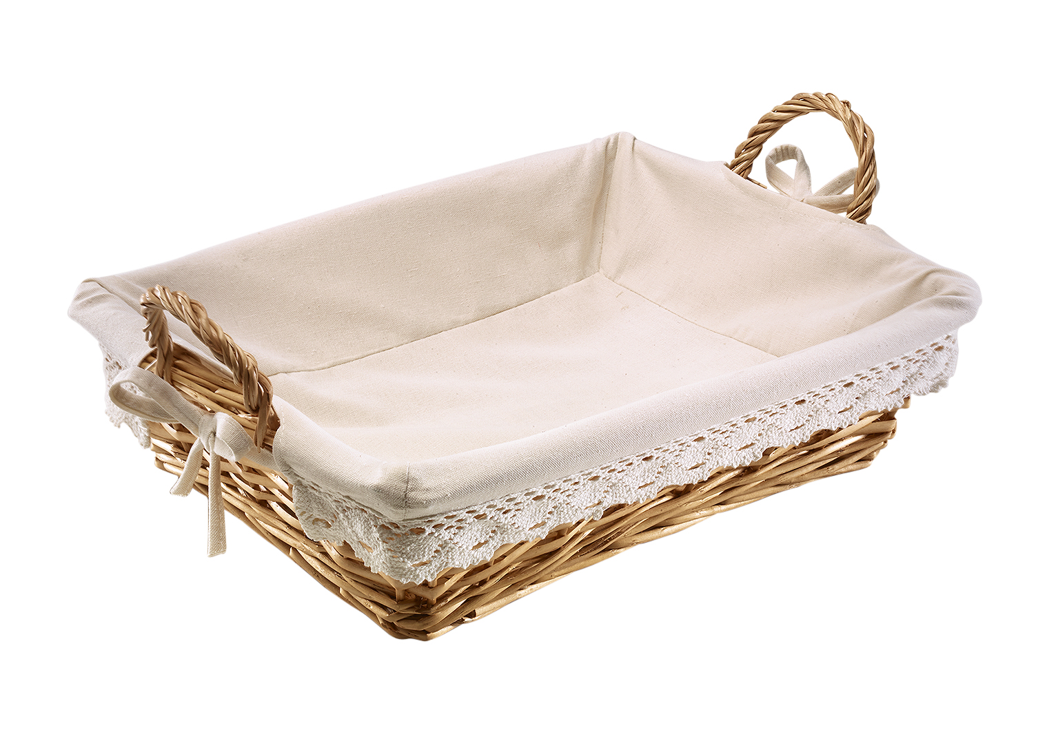 Die eckige Dekoschale von Kobolo ist aus naturfarbener Weide gefertigt und mit einem Textilfutter ausgekleidet. Die Weidenschale mit Häkelborte fügt sich harmonisch in jede Raumdeko und eignet sich außerdem hervorragend als Geschenkschale. Länge 39cm x Breite 31cm x Höhe 11cm