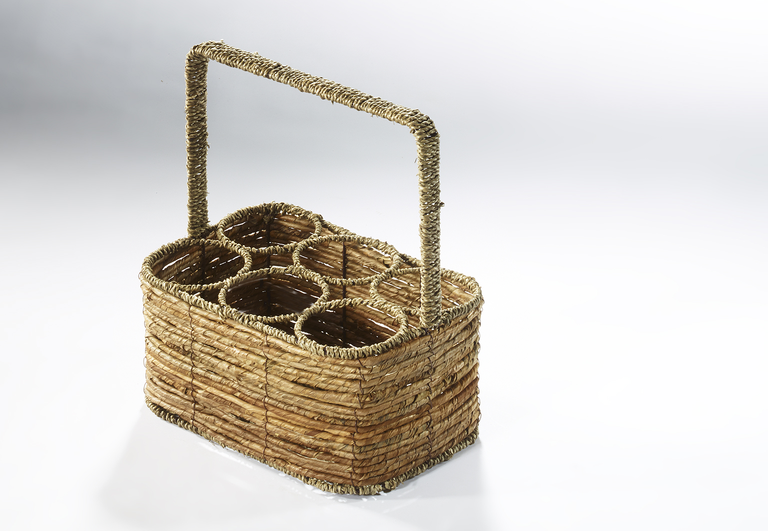 Flaschenkorb 6-teilig aus Bananenblatt braun