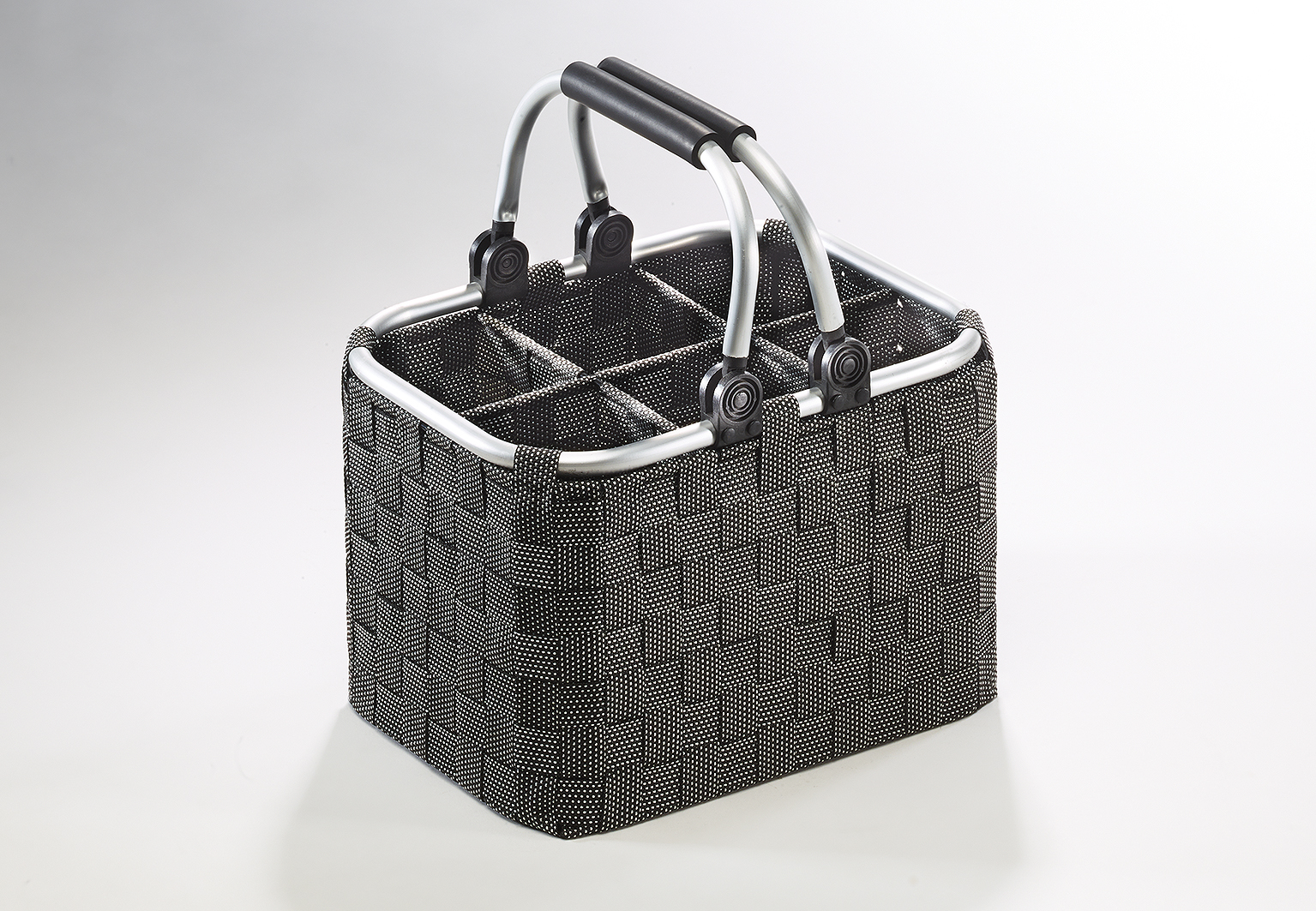 Flaschenträger für 6 Flaschen Metallrahmen mit Nylongeflecht in black white
