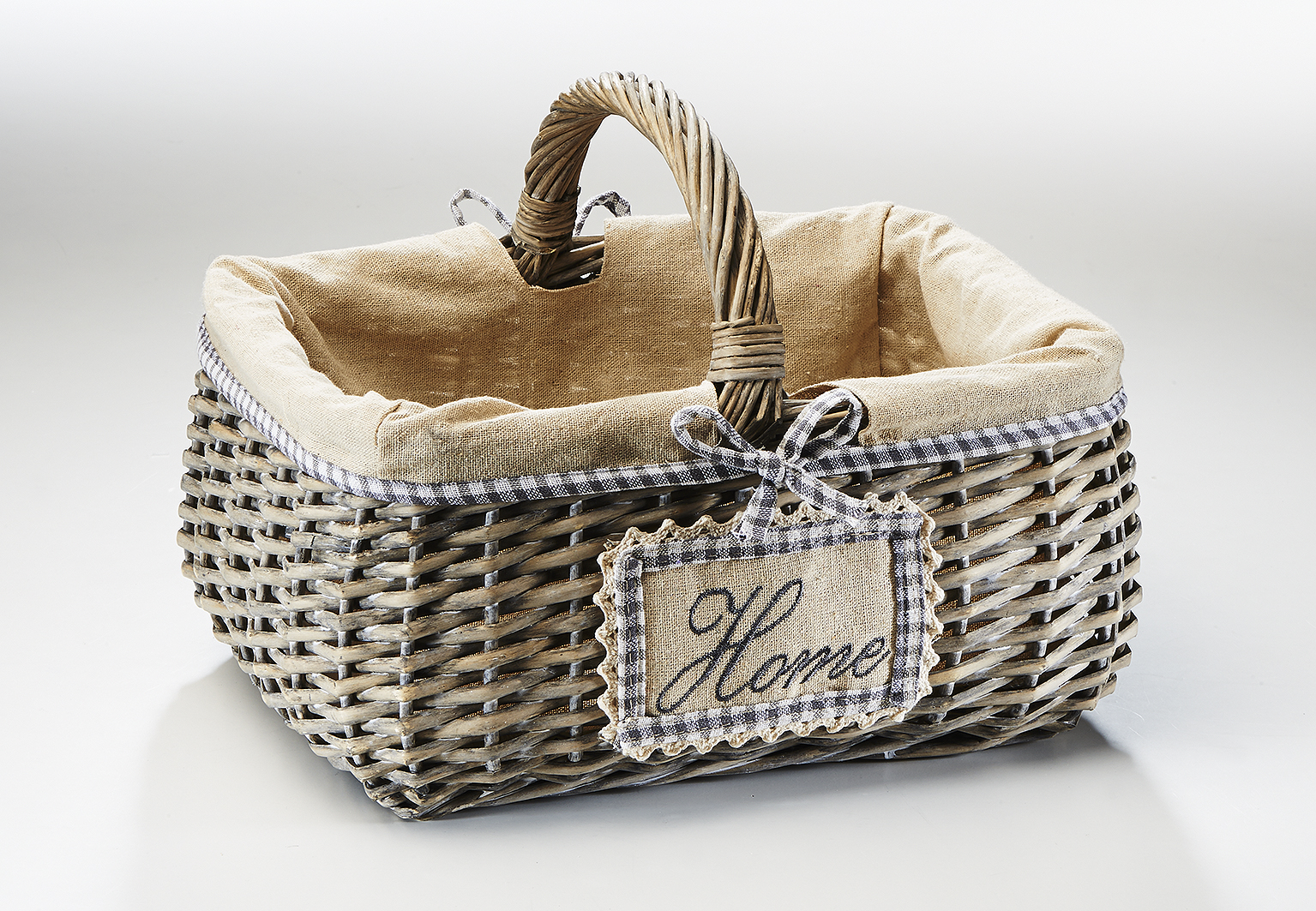 Deko-Korb eckig aus Weide grey-washed mit Textil ausgeschlagen