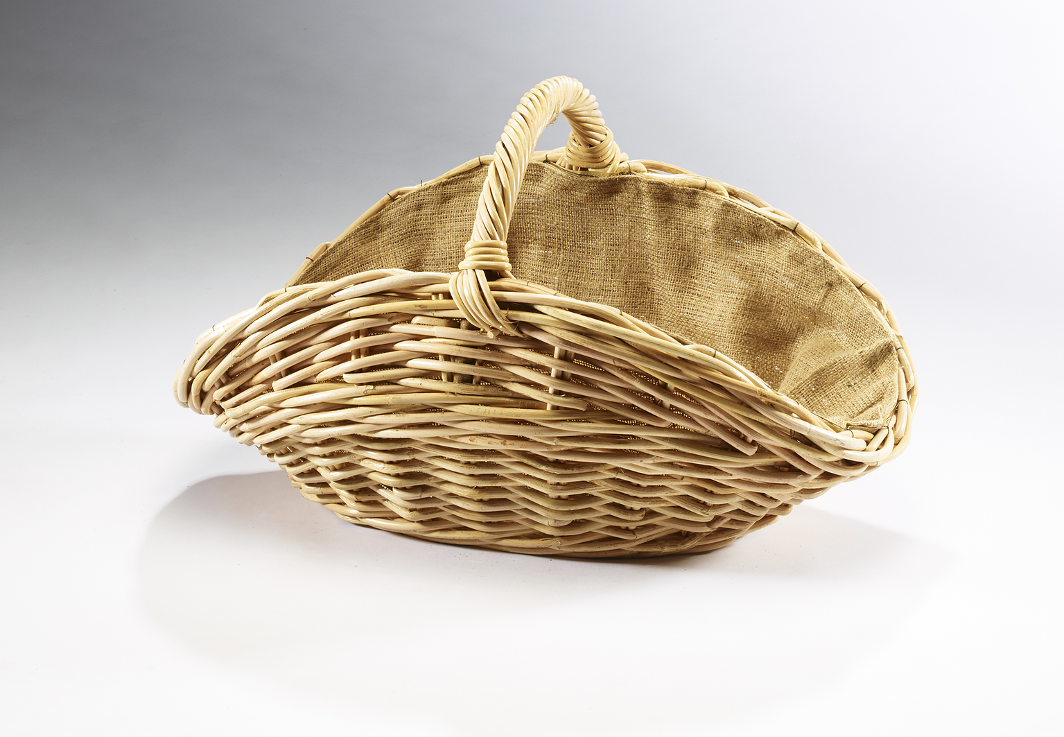 Holzkorb oval Kubu natural aus Rattan mit Henkel und Jute ausgeschlagen