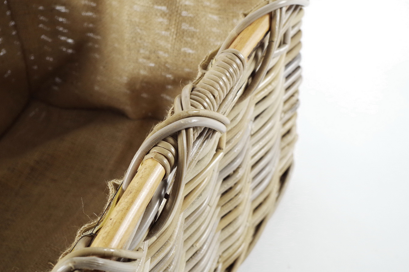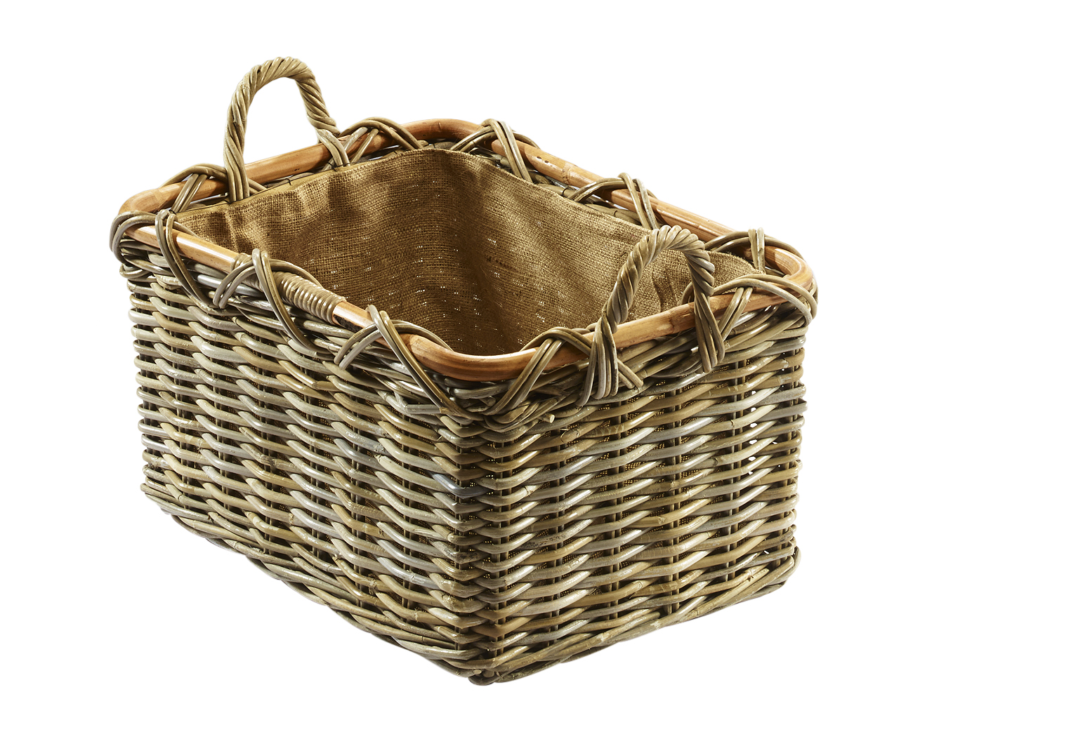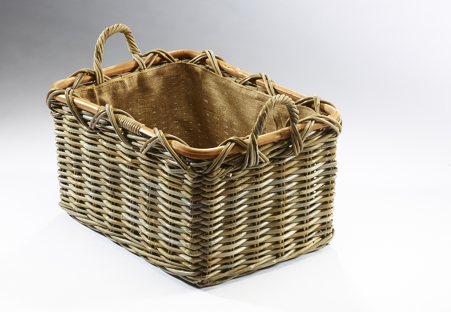 Rechteckiger Holzkorb/Kaminholzkorb in der Trendfarbe Kubu grey mit 2 Griffen für hohen Tragekomfort. Der moderne Korb ist zusätzlich mit Jute ausgeschlagen zum Schutz der Wohnung vor Holzrückständen. Der Jutestoff ist mit einem praktischen Klettverschluß versehen und kann bequem heraus genommen werden. Rattan ist aufgrund seiner natürlichen Beschaffenheit noch immer ein sehr beliebter Werkstoff zur Herstellung von Korbwaren und durch seine hohe Belastbarkeit bietet es Eigenschaften, die denen vieler anderer Materialien überlegen sind. Länge 55cm x Breite 40cm x Höhe 30cm