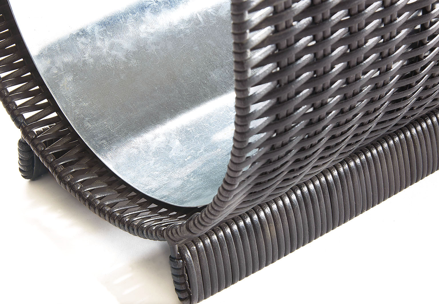 Der Schwerarbeiter unter den Körben von Kobolo ist robust und belastbar durch ein grundsolides Flechtwerk aus Polyrattan. Er wurde zum Schutz Ihrer Wohnung vor Holzrückständen mit Metall verkleidet. Mit diesem schönen und praktischen Accessoire ist es einfach, die Umgebung Ihres Ofens sauber zu halten. Polyrattan ist aufgrund seiner langlebigen Beschaffenheit ein sehr beliebter Werkstoff zur Herstellung von Korbwaren und durch seine hohe Belastbarkeit bietet es Eigenschaften, die denen vieler anderer Materialien überlegen sind. Länge 43cm x Breite 34cm x Höhe 34cm