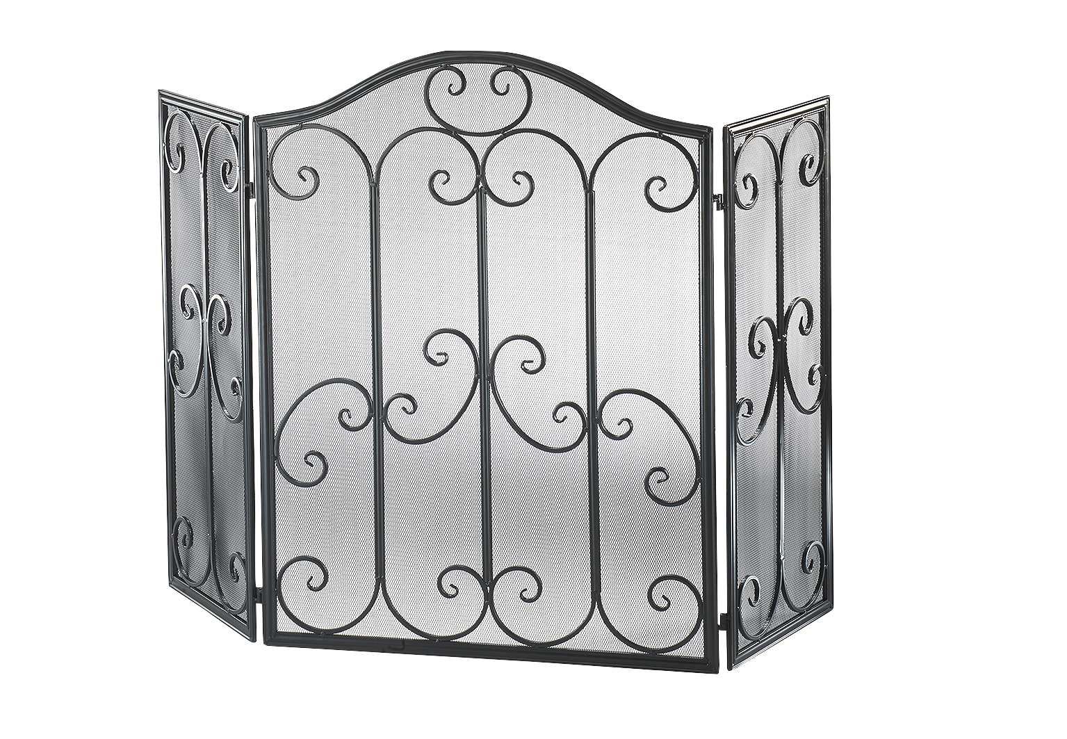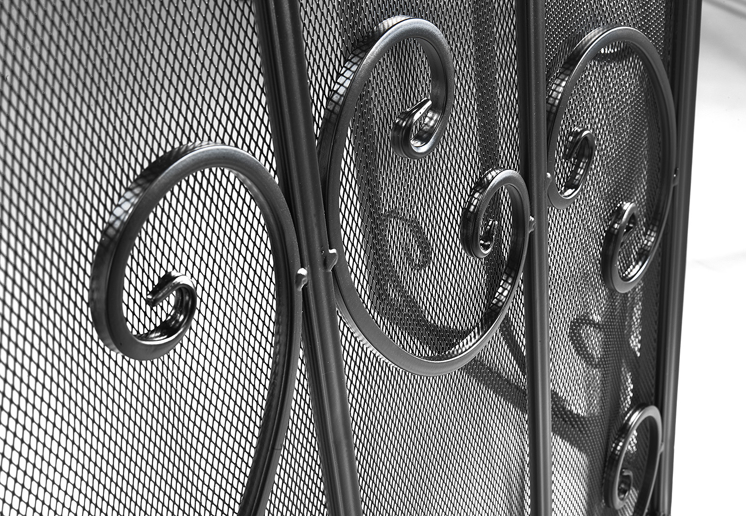 Kaminschutzgitter mit Ornamenten aus Metall schwarz