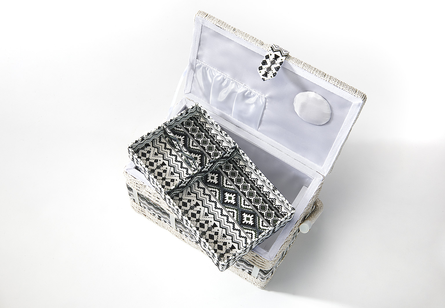 Das rechteckige Nähkästchen von Kobolo bietet mit seinem Organisationseinsatz viel Platz für Ihre Nähutensilien und kann durch den praktischen Tragegriff problemlos überall mitgenommen werden. Ansprechendes Design und hervorragende Verarbeitung machen Ihre Näharbeiten zum reinsten Vergnügen. Länge 28cm x Breite 18cm x Höhe 16cm