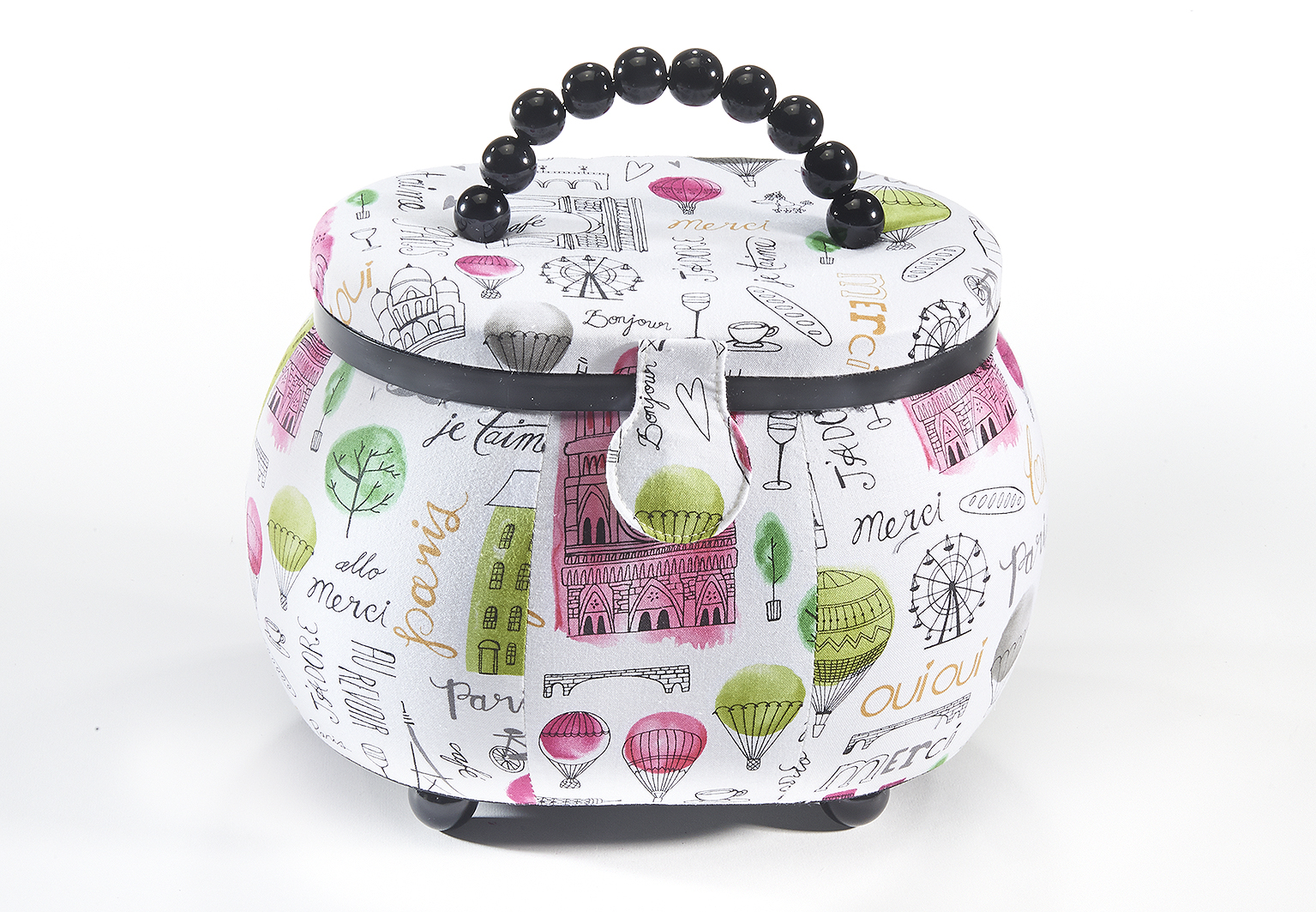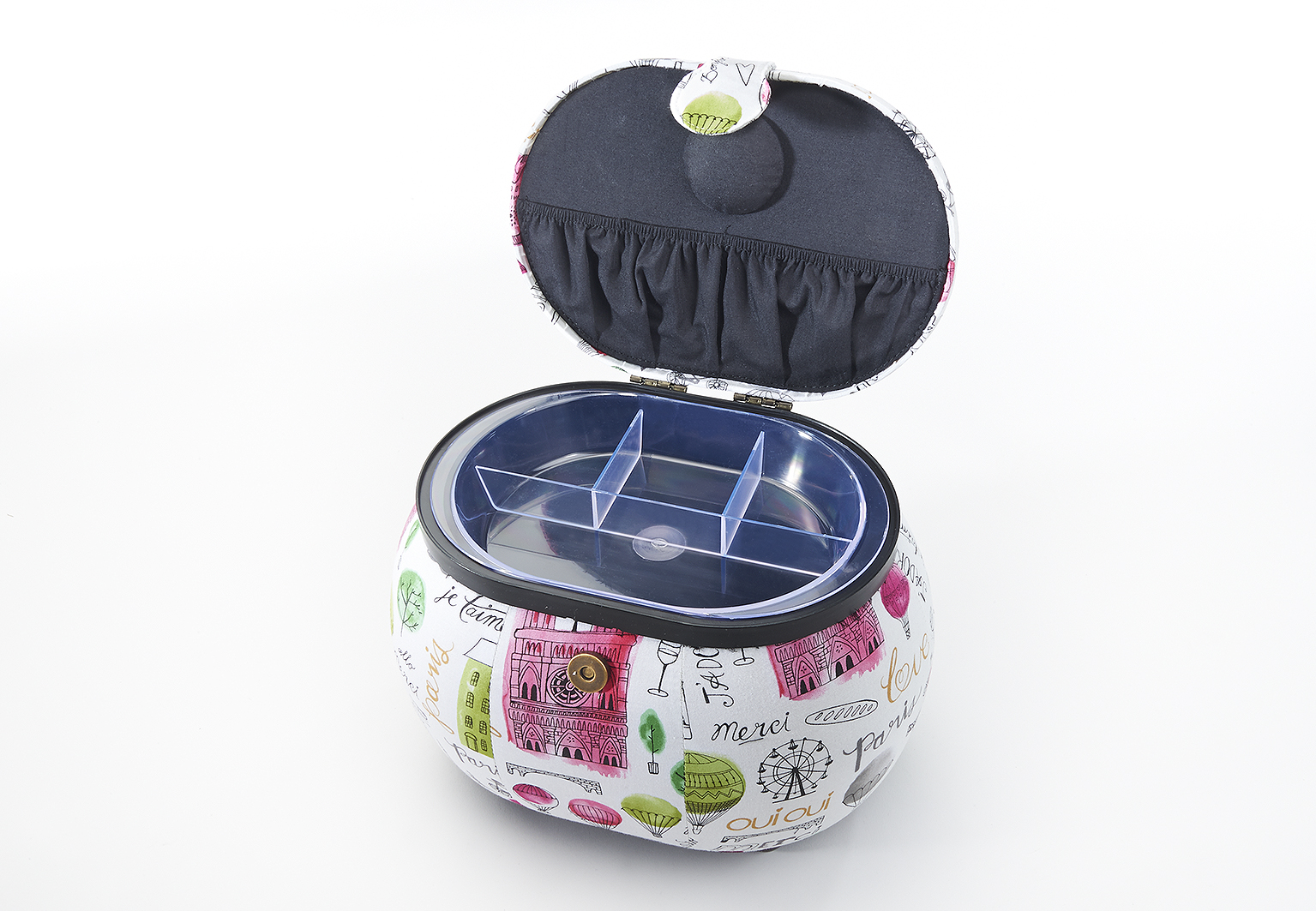 Das ovale Nähkästchen von Kobolo bietet mit seinem Organisationseinsatz viel Platz für Ihre Nähutensilien und kann durch den praktischen Tragegriff problemlos überall mitgenommen werden. Ansprechendes Design und hervorragende Verarbeitung machen Ihren Näharbeiten zum reinsten Vergnügen. Länge 28cm x Breite 21cm x Höhe 19cm