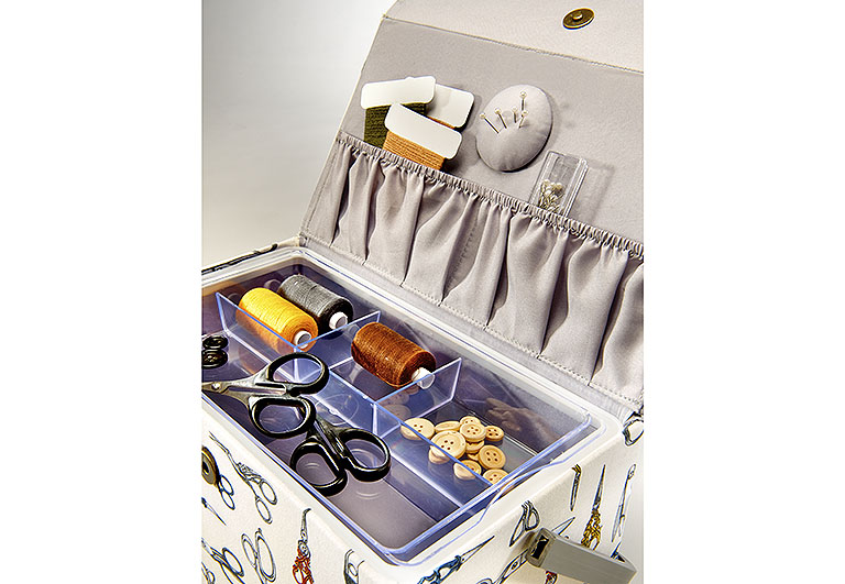 Das rechteckige Nähkästchen von Kobolo überzeugt durch eine gelungene Kombination von Funktionalität und Design. Ausgestattet mit einem praktischen Tragegriff und einem Einsatz, der viel Platz für Ihre Nähutensilien bietet, ist das Stoffnähkästchen der ideale Begleiter für Ihre Näharbeiten. Ohne Deko. Länge 29cm x Breite 17cm x Höhe 19cm