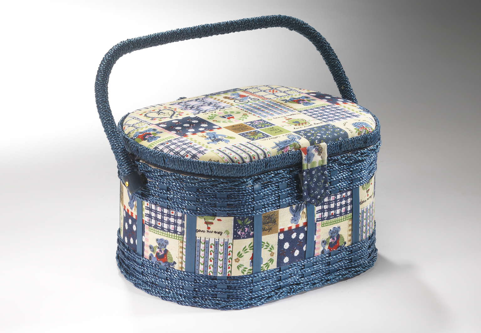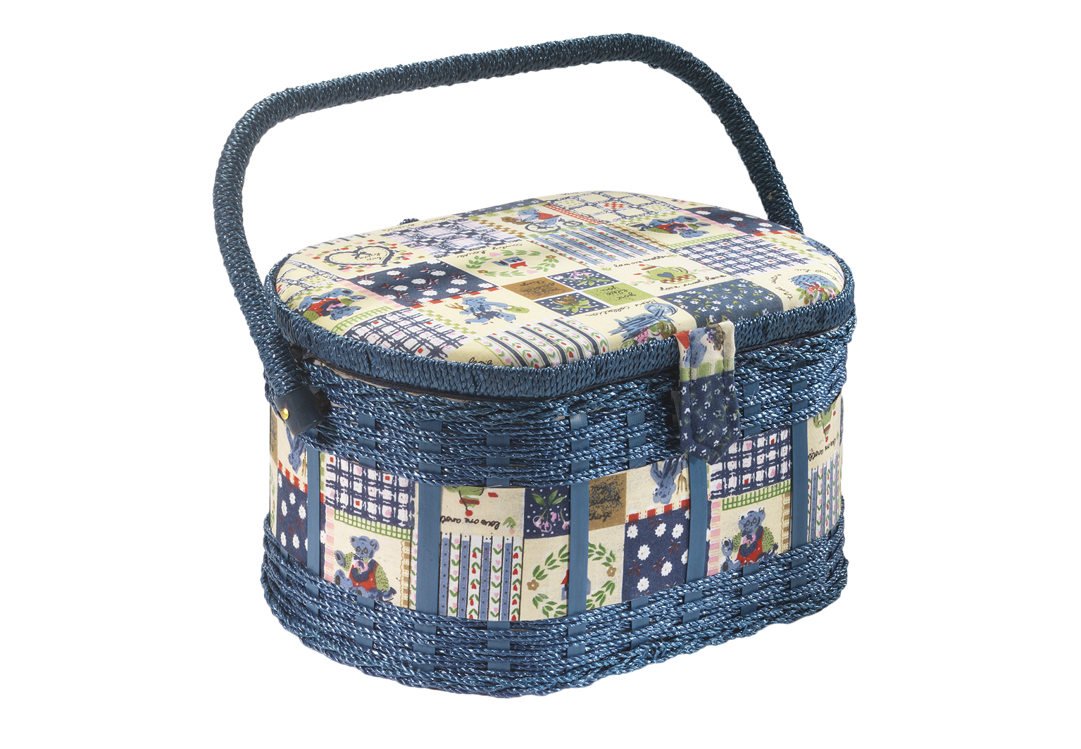 Wunderschönes ovales Nähkörbchen von Kobolo im nostalgischen Stoffdesign. Im Inneren befindet sich ein flacher, herausnehmbarem Organisationseinsatz für verschiedene Kleinteile. Der Tragegriff kann zurück geklappt werden. Ausgestattet ist der Nähkorb innen mit einem farblich abgestimmtem Stoff. Länge 28cm x Breite 19cm x Höhe 16cm