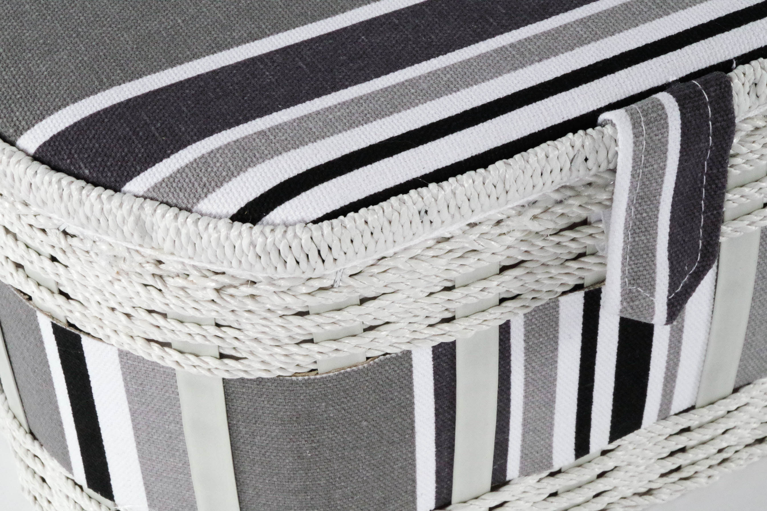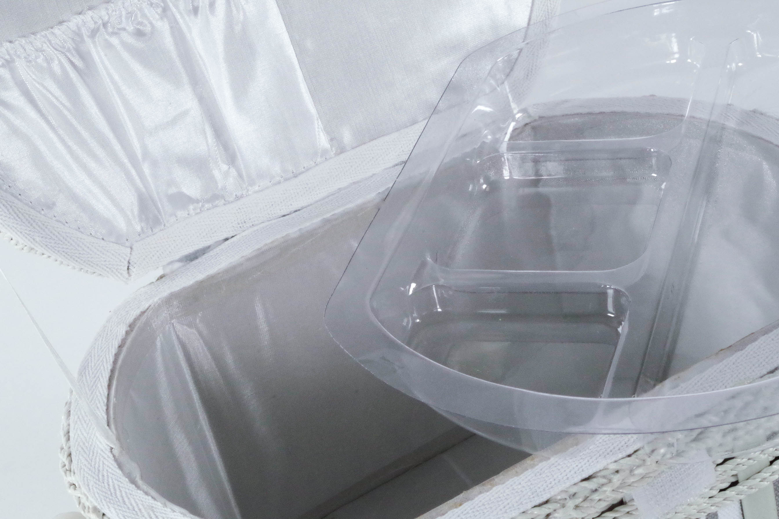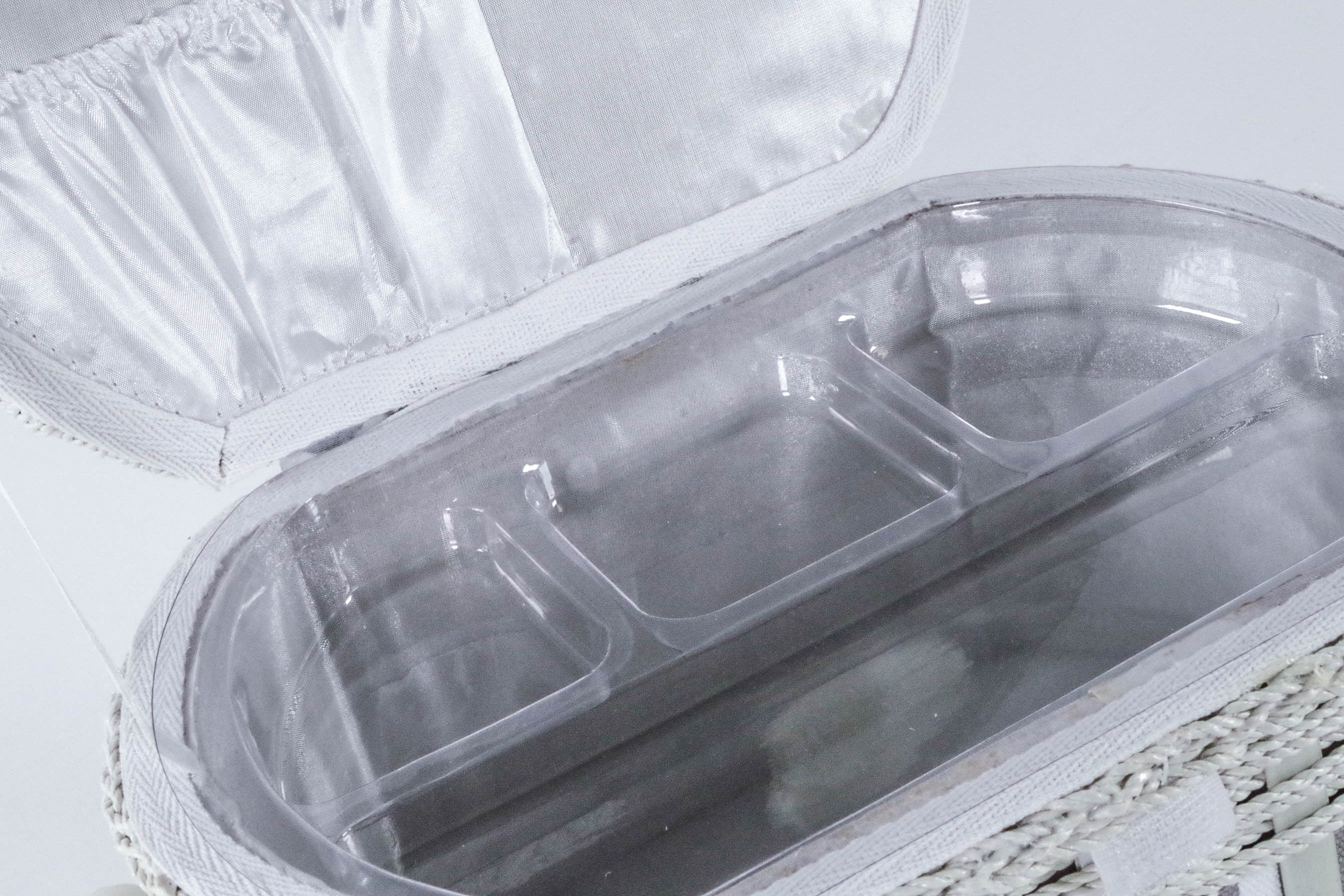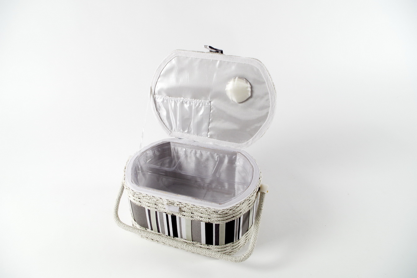 Nähkorb oval,weißes Geflecht, mit grauen Stofffutter