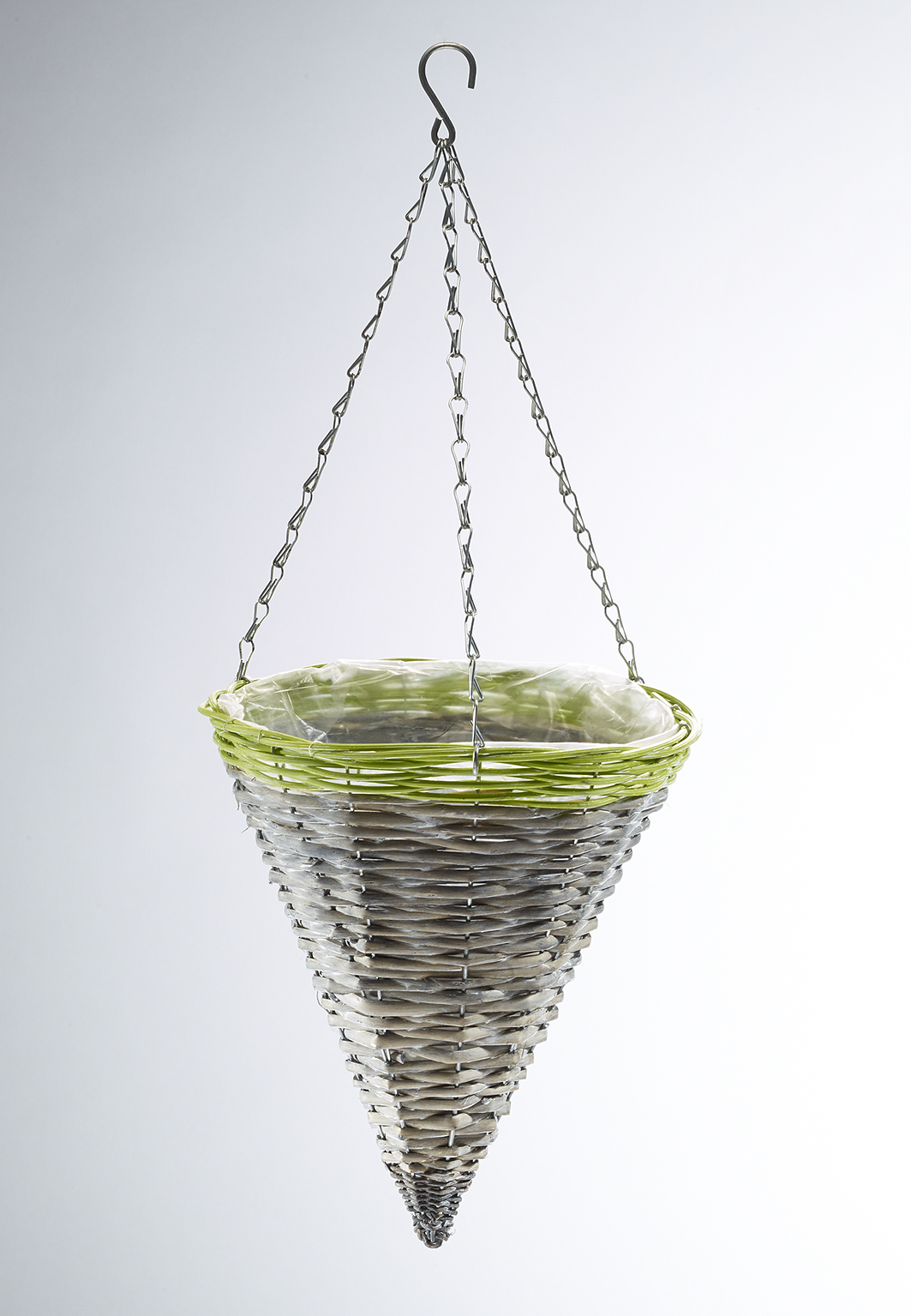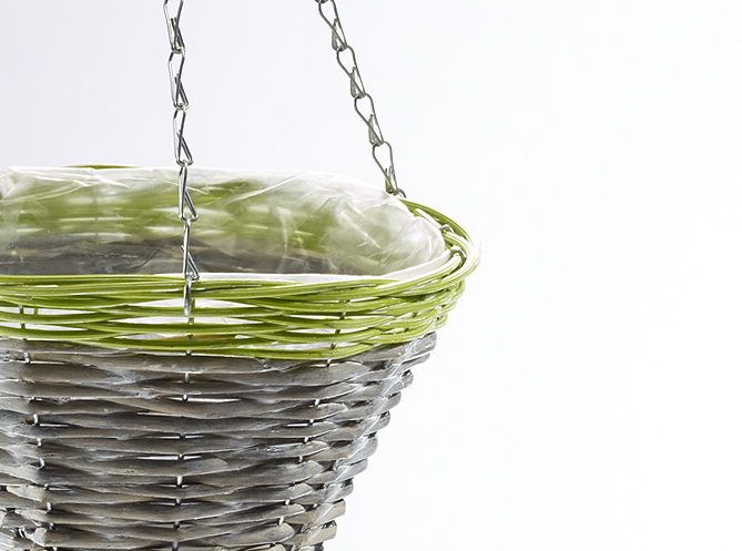 Blumenampel rund aus Weide grau mit grünem Rand aus Polyrattan