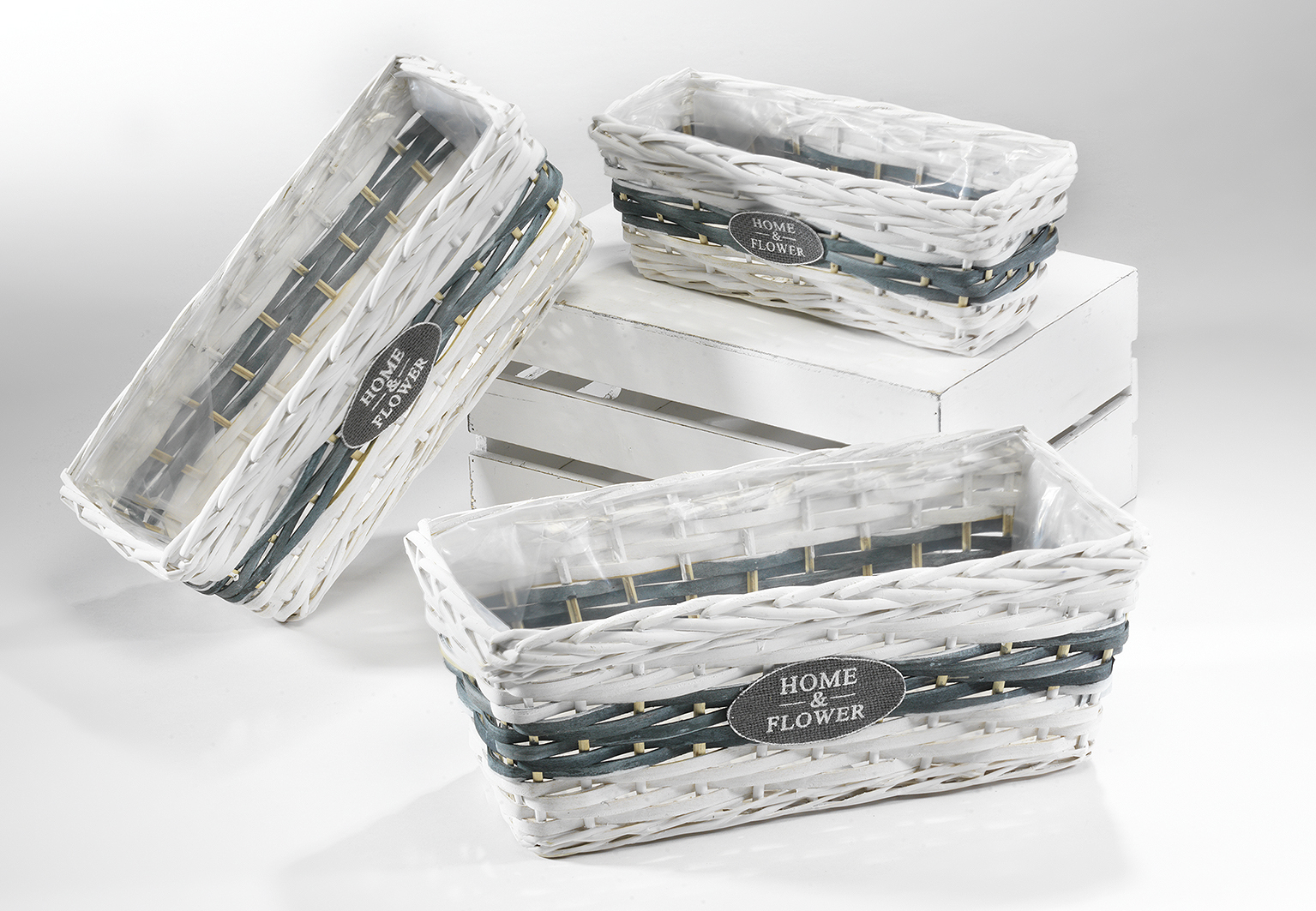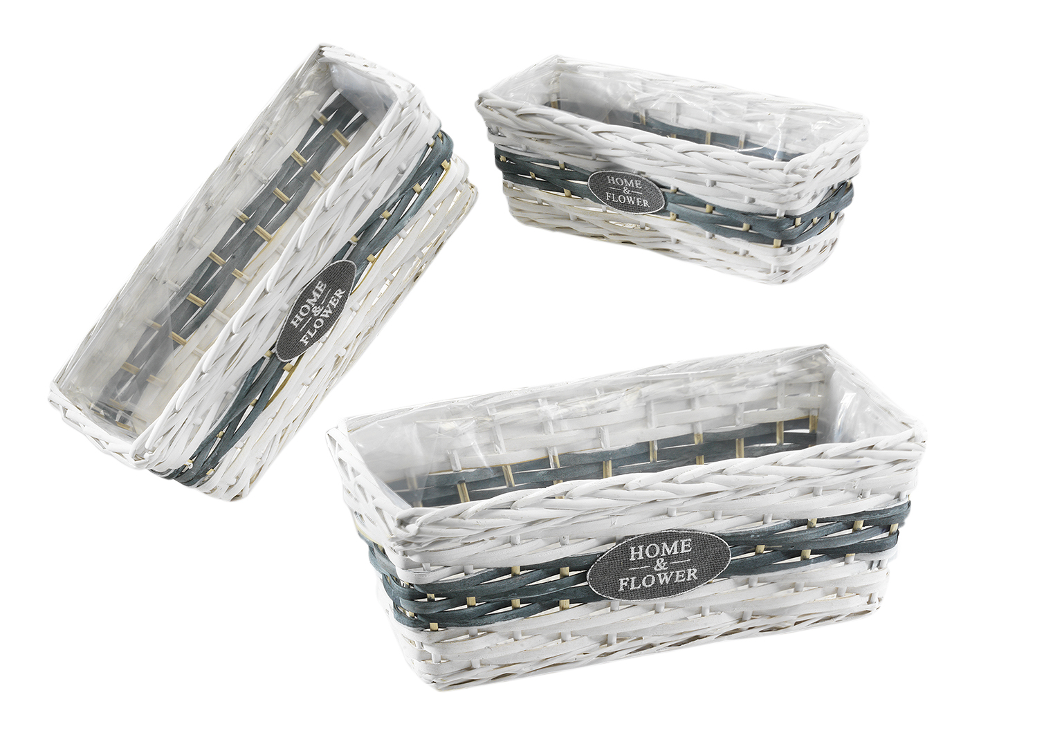 Pflanzkörbchen weiß grau rechteckig Chipwood mit Folie ausgeschlagen S/3