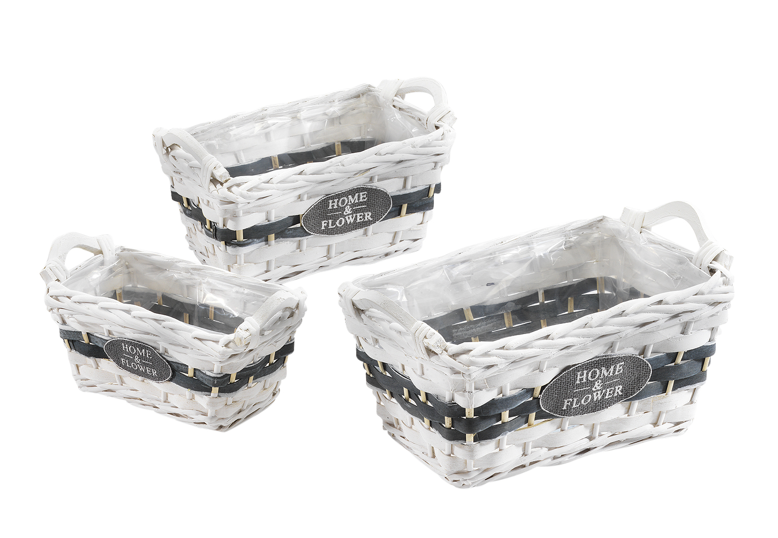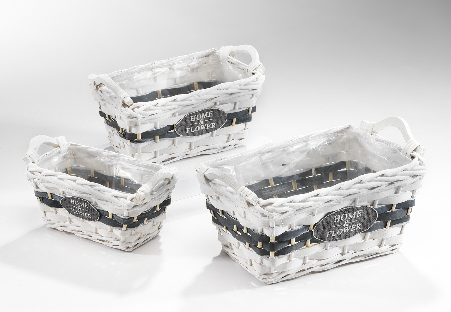 Pflanzkörbchen weiß grau rechteckig Chipwood mit Folie ausgeschlagen S/3