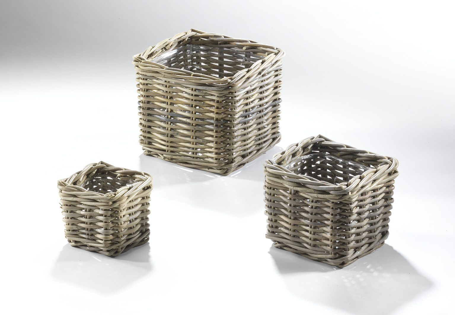 Die quadratischen Rattanübertöpfe im 3er Set von Kobolo sind aus natürlichem Kubu-Rattan in einem zeitlosen Grauton gefertigt. Praktisch mit Folie ausgeschlagen, eignen sich die Rattankörbe perfekt zum Bepflanzen. Das natürliche Farbenspiel des Materials macht den Reiz dieser in aufwendiger Handarbeit gefertigten Übertöpfe aus. Rattan ist aufgrund seiner natürlichen Beschaffenheit noch immer ein sehr beliebter Werkstoff zur Herstellung von Korbwaren und durch seine hohe Belastbarkeit bietet es Eigenschaften, die denen vieler anderer Materialien überlegen sind. Maße Ca.Gr1 15cm x 15cm x 12cm , Gr2 21cm x 21cm x 16cm , Gr3 28cm x 28cm x 22cm