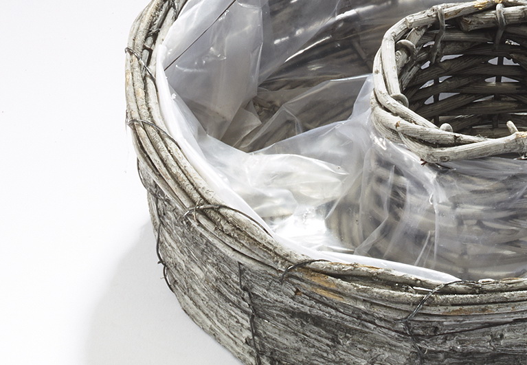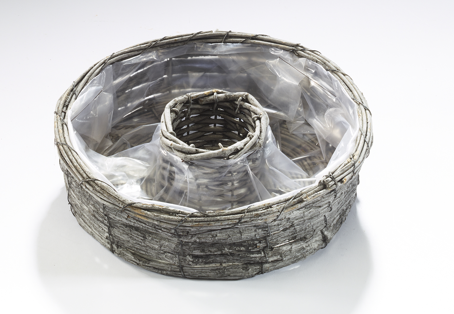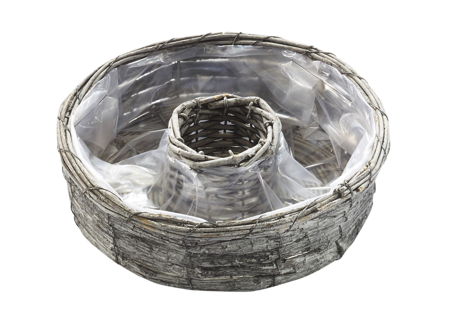 Pflanzring aus grauer Rinde rund mit Folie ausgeschlagen
