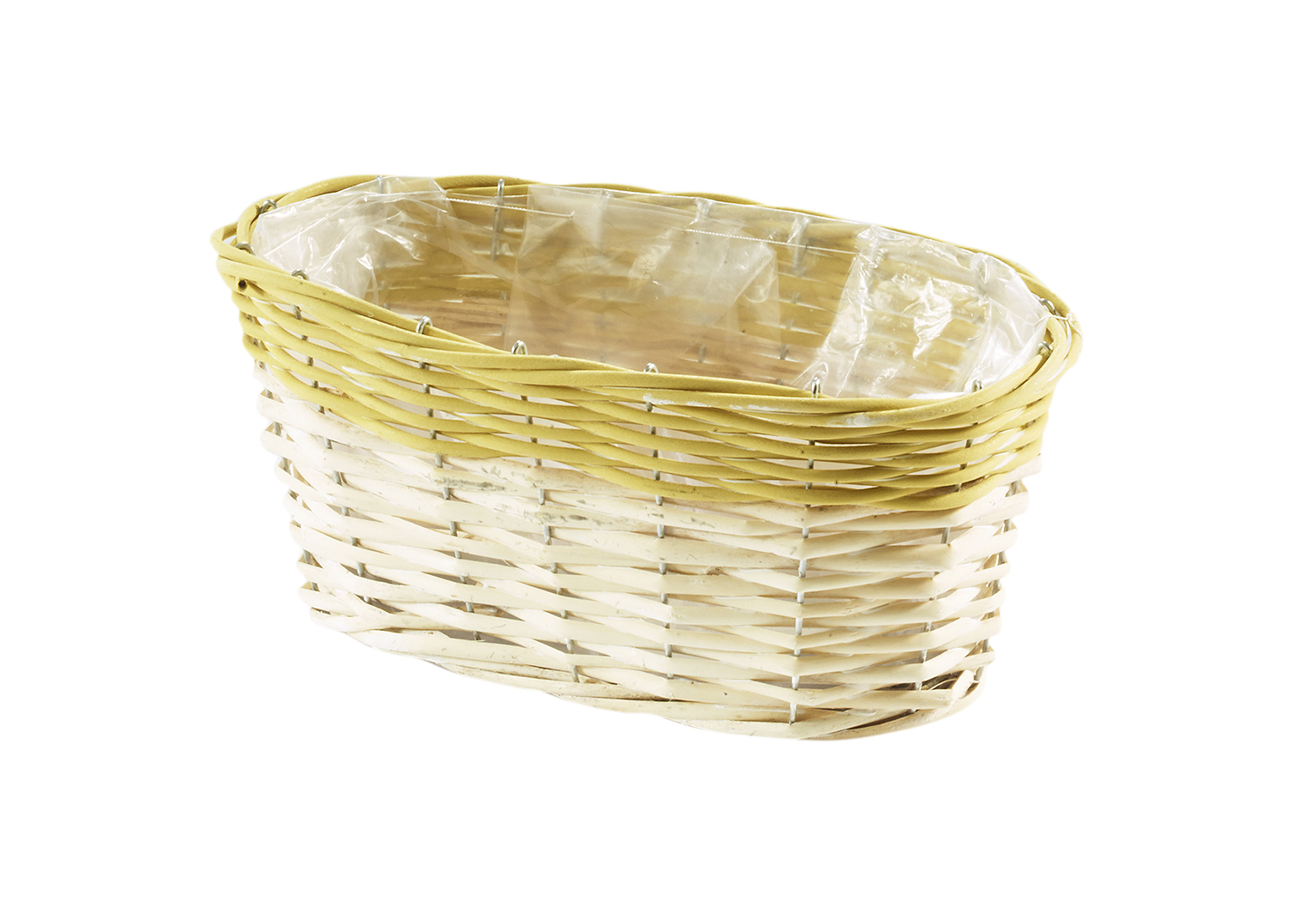 Die ovale Pflanzschale aus Weide und Polyrattan von Kobolo bringt Ihre Pflanzen wunderbar zur Geltung und verschönert aufgrund ihrer dezenten Farbgestaltung in weiß und curry jedes Zuhause. Länge 30cm x Breite 16cm x Höhe 14cm