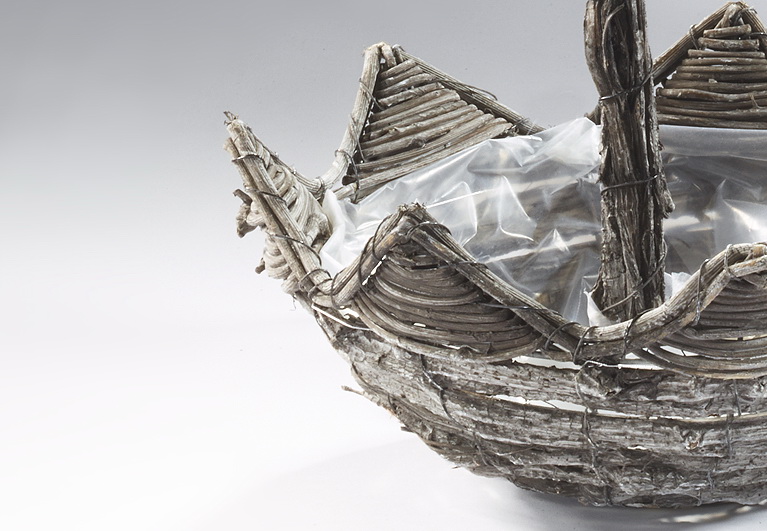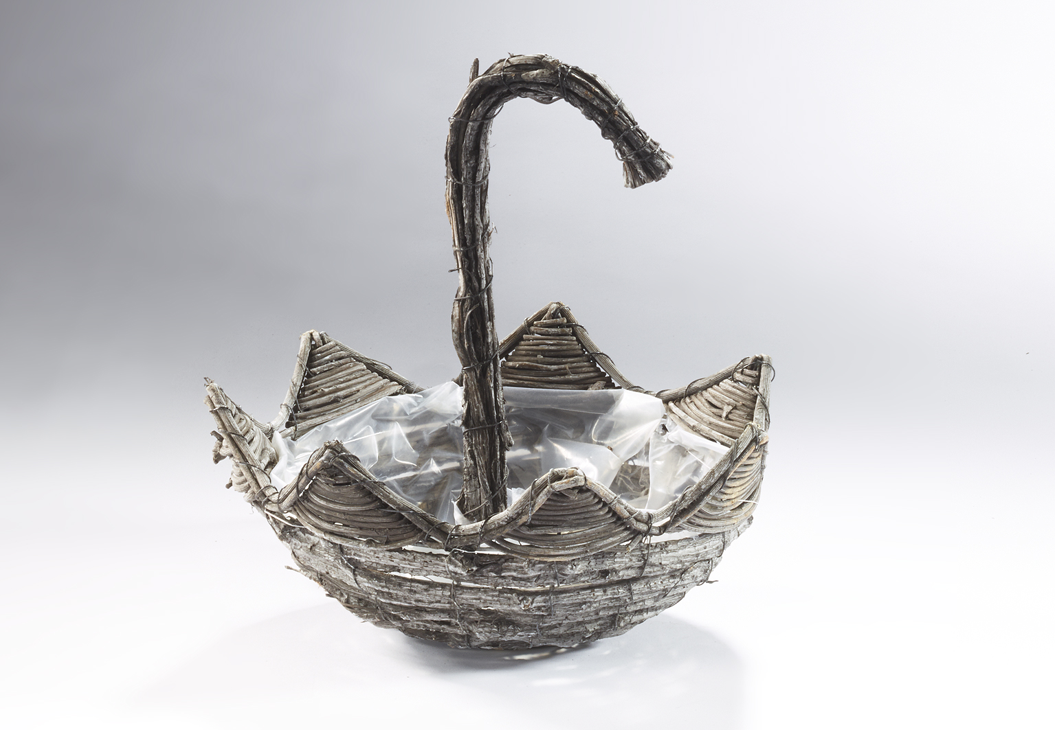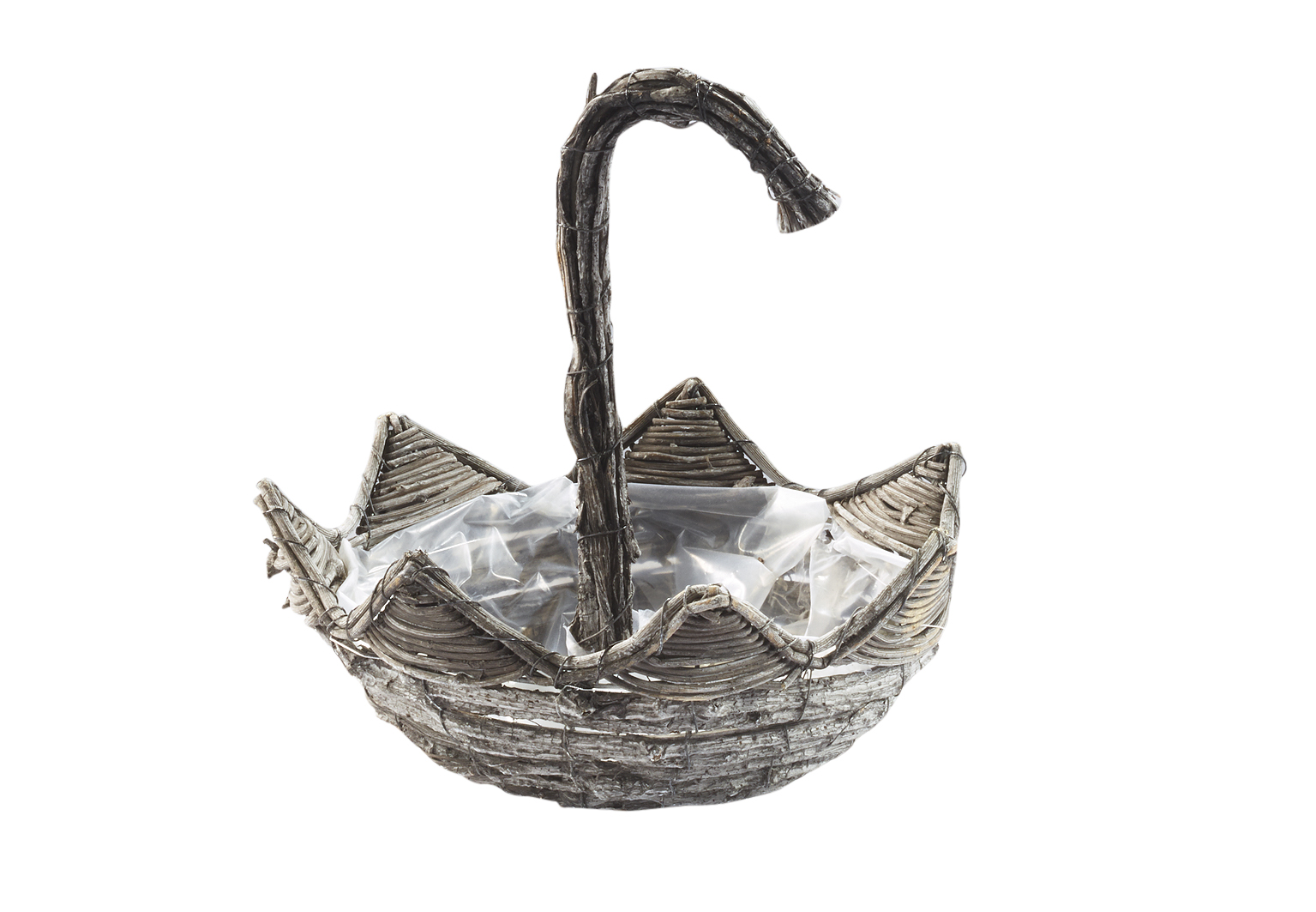 Regenschirm bepflanzbar aus grauer Rinde mit Folie ausgeschlagen