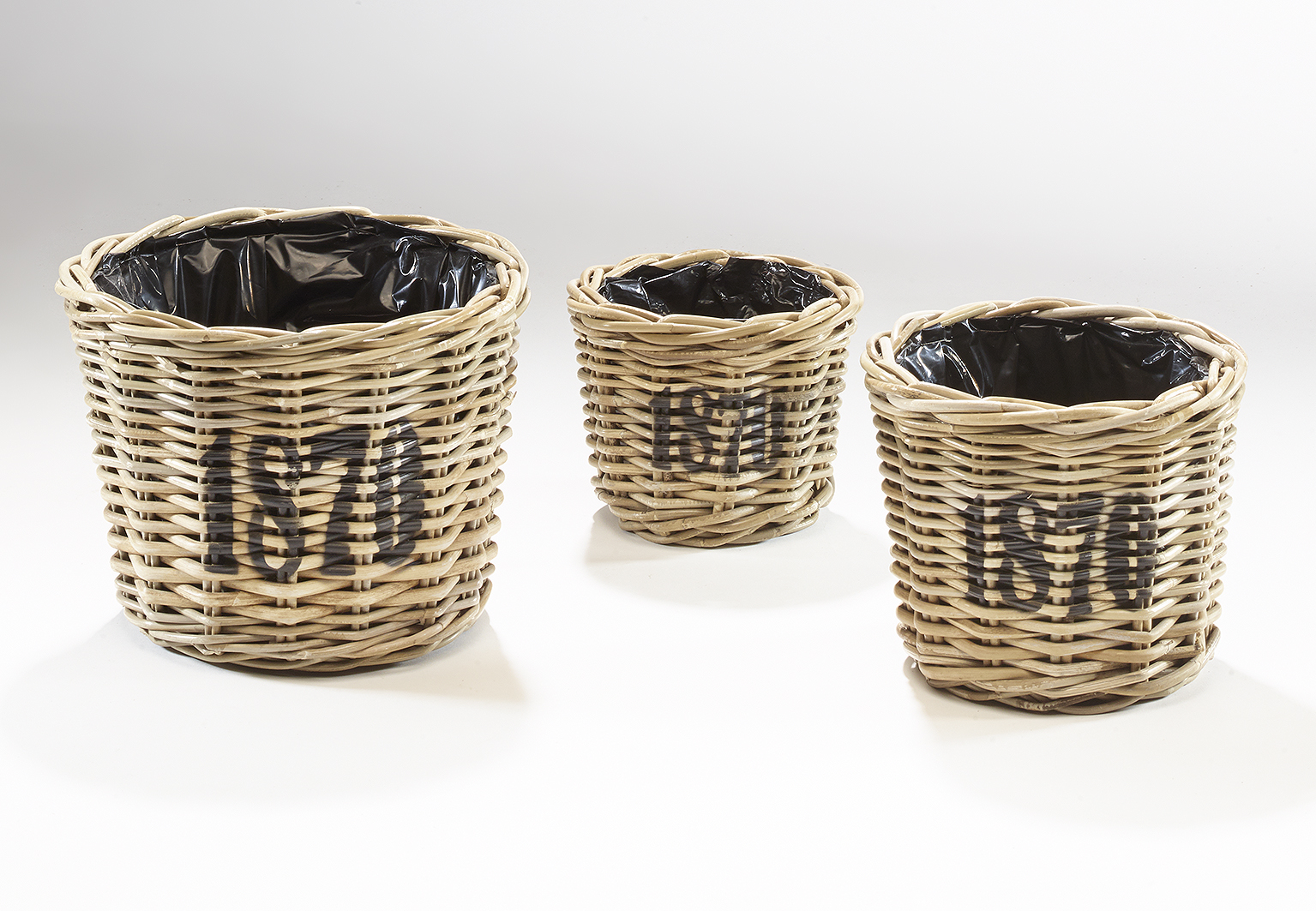 Die runden Rattanübertöpfe im 3er Set von Kobolo sind aus natürlichem Kubu-Rattan in einem zeitlosen Grauton gefertigt. Praktisch mit Folie ausgeschlagen, eignen sich die Rattankörbe perfekt zum Bepflanzen. Das natürliche Farbenspiel des Materials macht den Reiz dieser in aufwendiger Handarbeit gefertigten Übertöpfe aus. Rattan ist aufgrund seiner natürlichen Beschaffenheit noch immer ein sehr beliebter Werkstoff zur Herstellung von Korbwaren und durch seine hohe Belastbarkeit bietet es Eigenschaften, die denen vieler anderer Materialien überlegen sind. Maße Ca.Gr1 Ø20cm x Höhe 16cm , Gr2 Ø25cm x Höhe 20cm , Gr3 Ø31cm x Höhe 23cm