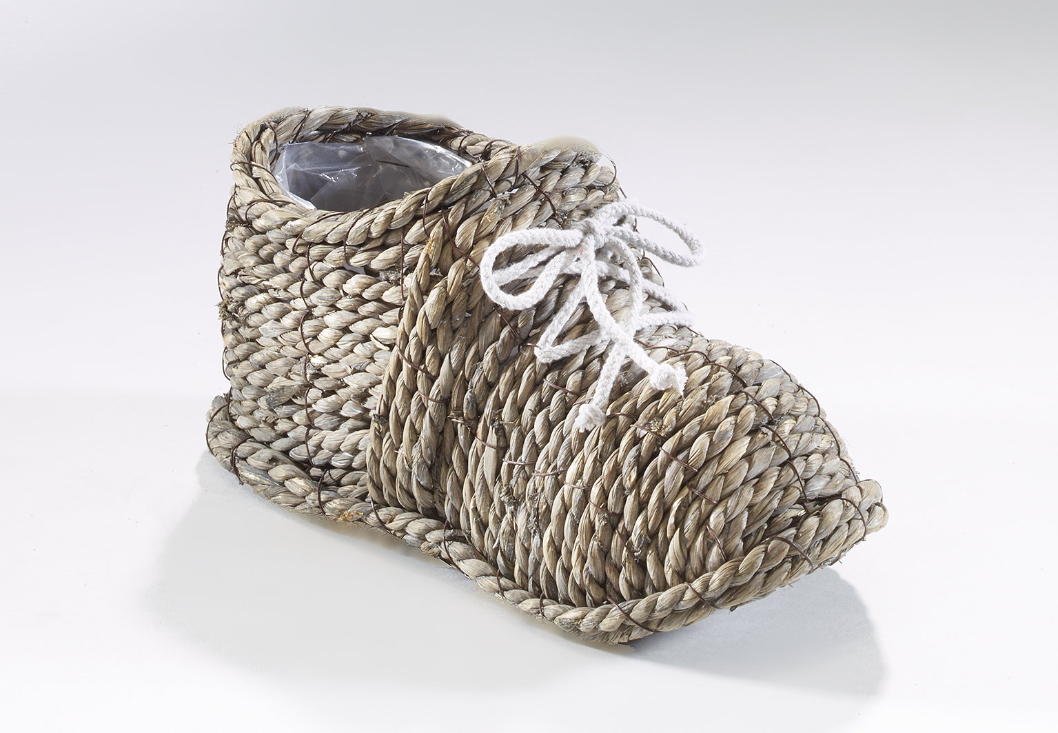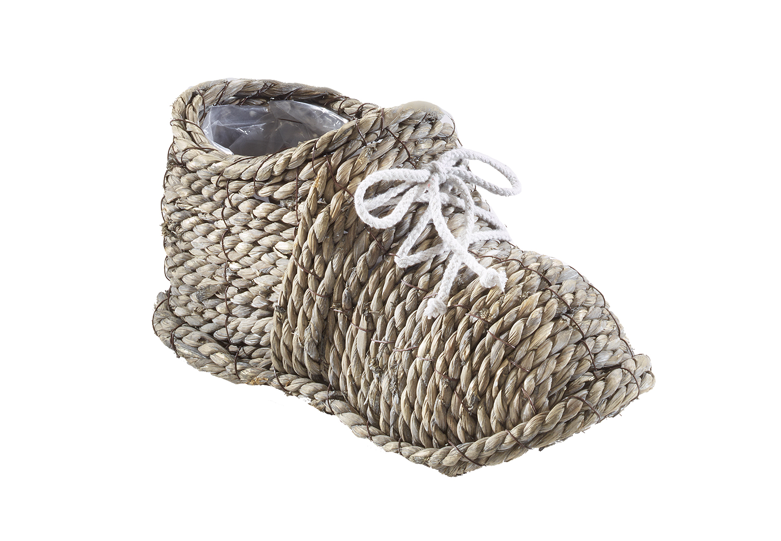 Übertopf aus Wasserhyazinteh in Form eines Schuhs mit Folie groß