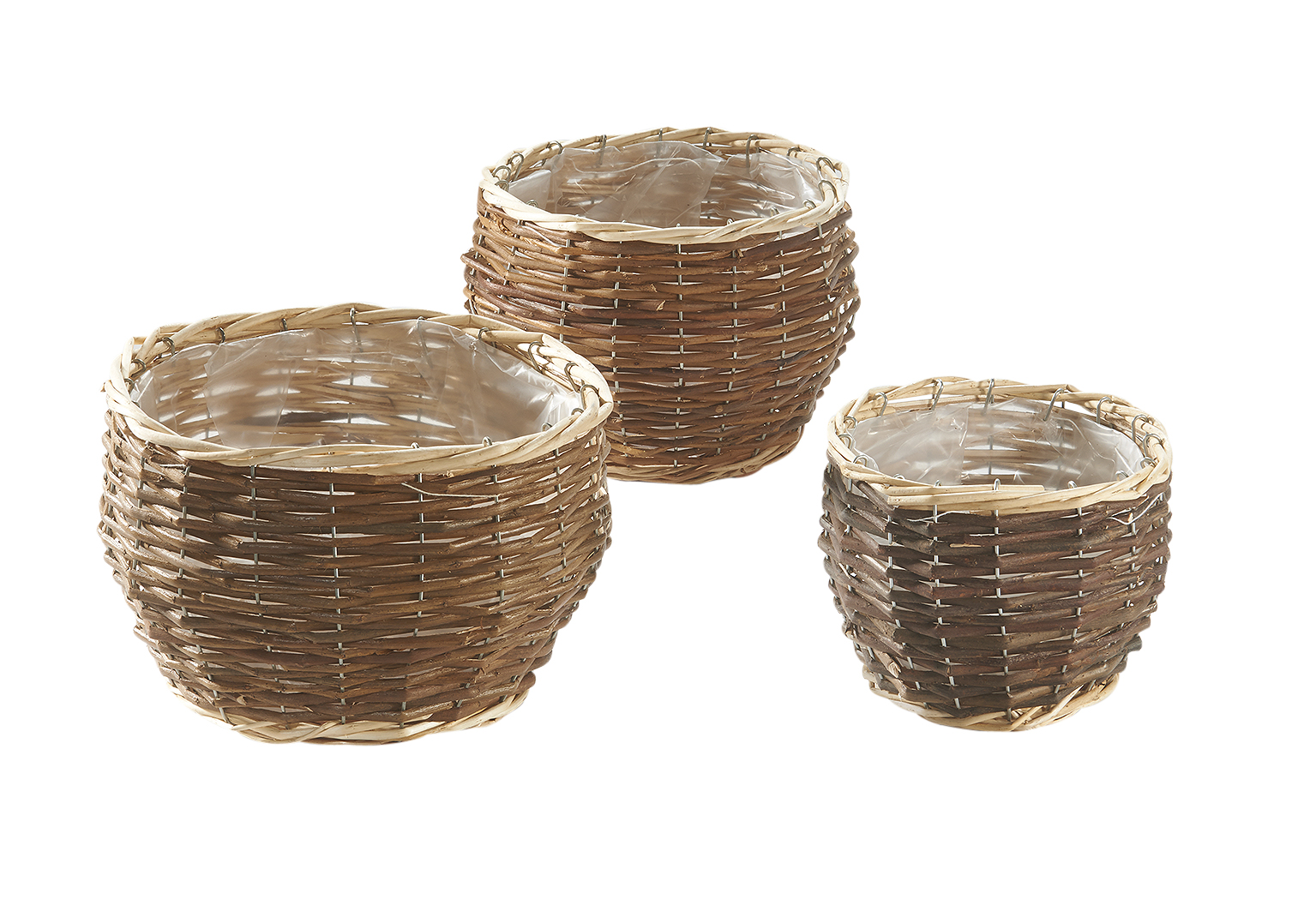 Übertopf rund aus ungeschälter Weide mit Folie ausgeschlagen S/3