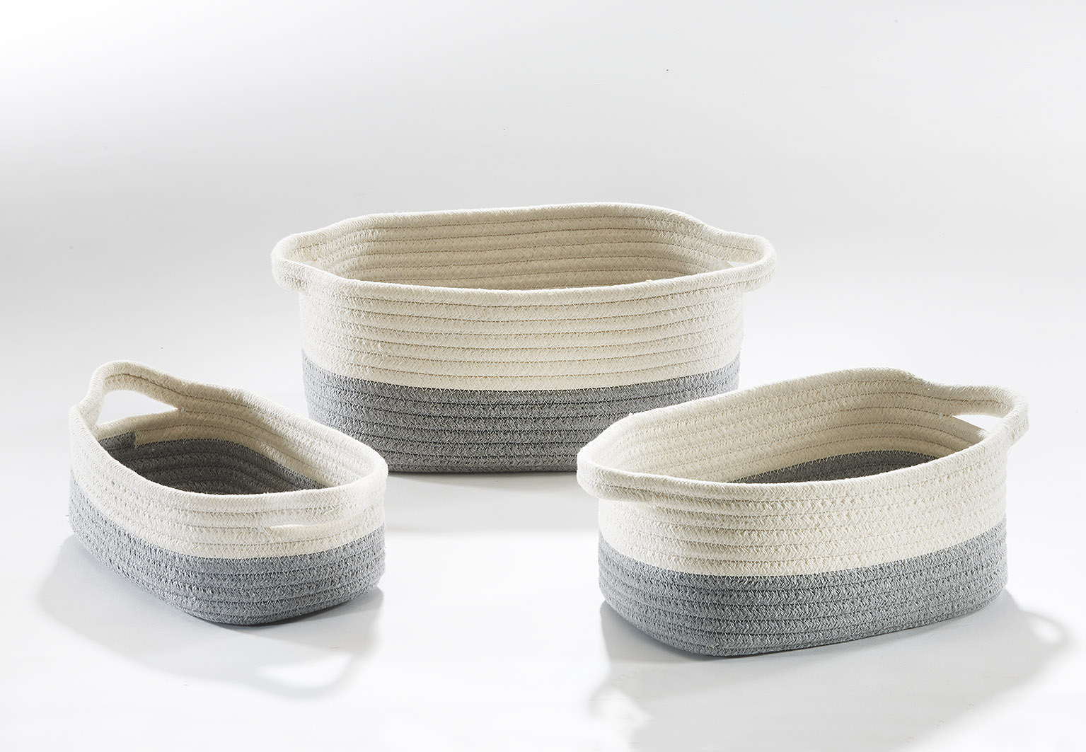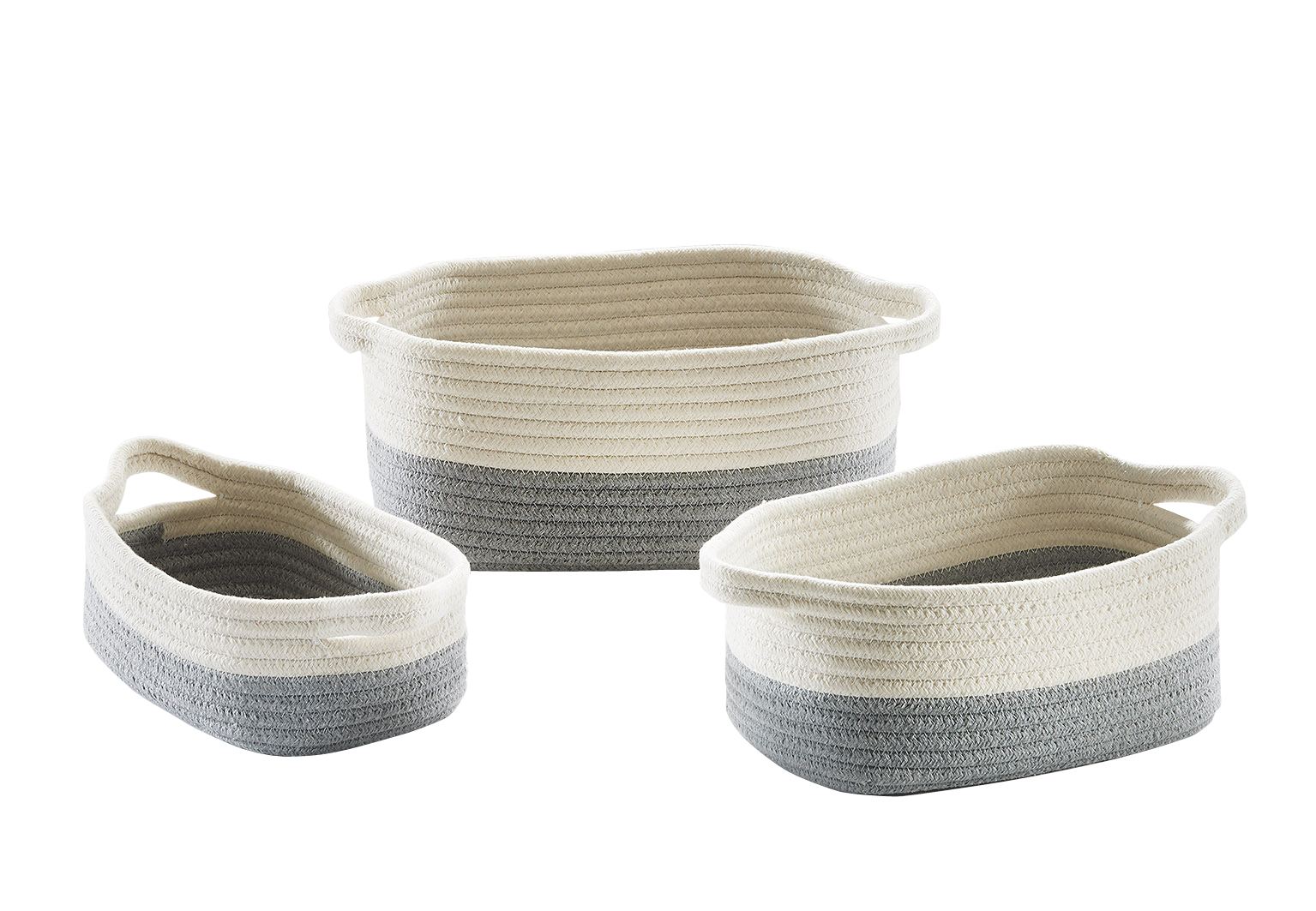 Dieses Baumwollkorbset von Kobolo ist vielseitig verwendbar und schmückt jeden Raum. Die einzelnen Körbe werden in Handarbeit und aus Baumwollseilen vernäht. Diese Universalkörbe können zum Beispiel als Regalkörbe verwendet werden. Auch als Utensilien- oder Allzweckkorb ein echter Hingucker. Maße Ca.Gr1 28cm x 18cm x 9 cm , Gr2 30cm x 20cm x 13cm , Gr3 31cm x 21cm x 14cm