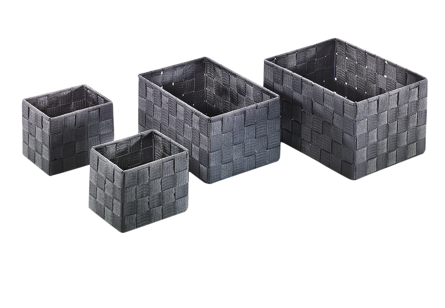 Dieses Regalkorb Set von Kobolo im aktuellen Design schafft Ordnung und vielfältige Gestaltungsmöglichkeiten. Ob als Regaleinsatz oder einzeln als Aufbewahrungsbox, die Regalkörbe werden zum geschätzten Aufräumhelfer. Das Set enthält für jede Gelegenheit die passende Größe. Ihre Schränke oder Regale werden auf eine besondere Art verschönert und aufgewertet. Maße Ca.Gr1 13cm x 10cm x 10cm , Gr2 23cm x 16cm x 12cm , Gr3 25cm x 18cm x 14cm , Gr4 13cm x 10cm x 10cm