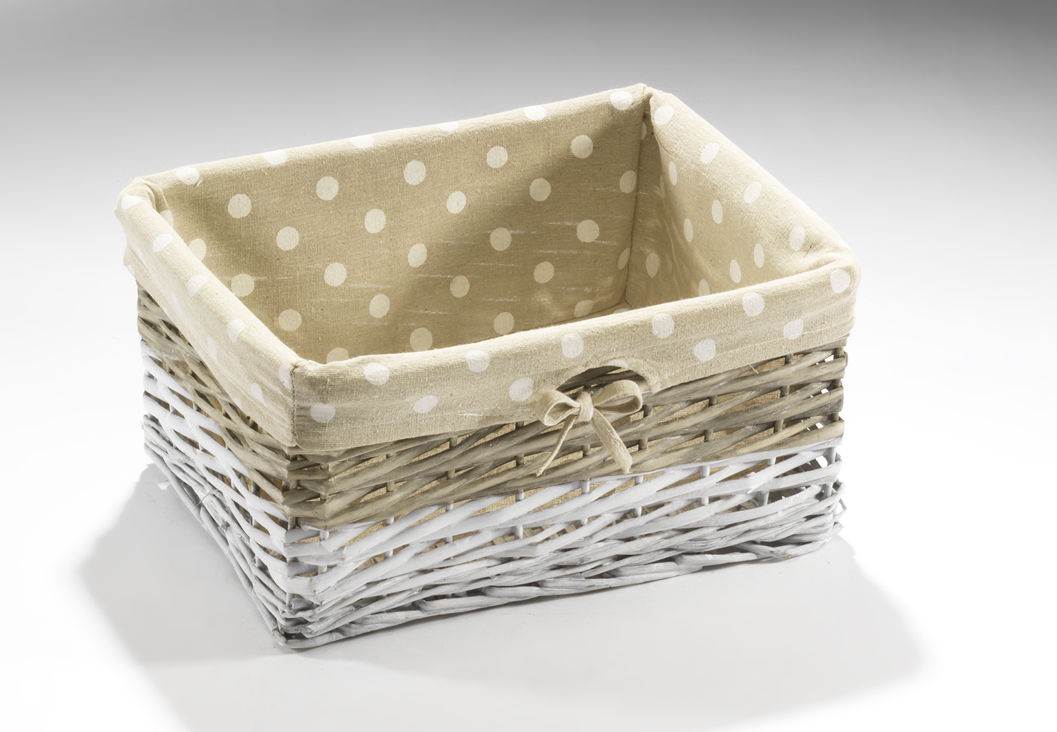 Regalkorb Weide/Textil grau/weiß rechteckig