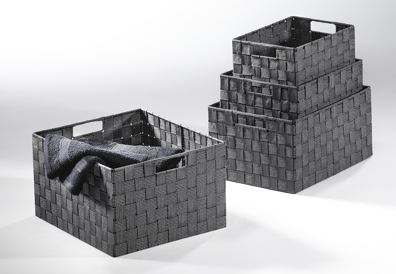 Dieses Regalkorb Set von Kobolo im aktuellen Design schafft Ordnung und vielfältige Gestaltungsmöglichkeiten. Ob als Regaleinsatz oder einzeln als Aufbewahrungsbox, die Regalkörbe werden zum geschätzten Aufräumhelfer. Das Set enthält für jede Gelegenheit die passende Größe. Ihre Schränke oder Regale werden auf eine besondere Art verschönert und aufgewertet. Maße Ca.Gr1 26cm x 20cm x 15cm , Gr2 30cm x 24cm x 16cm , Gr3 34cm x 27cm x 18cm , Gr4 38cm x 30cm x 20cm