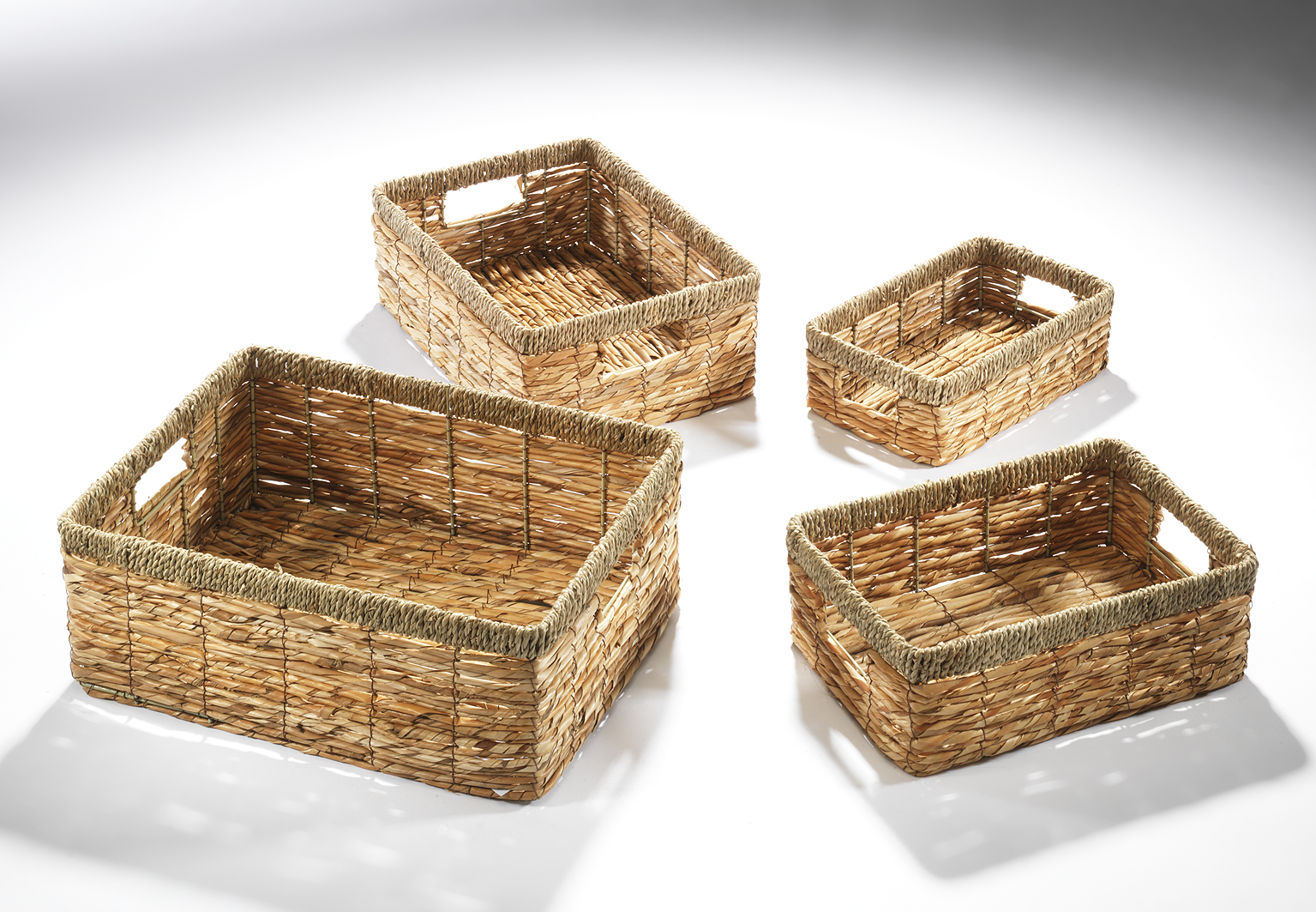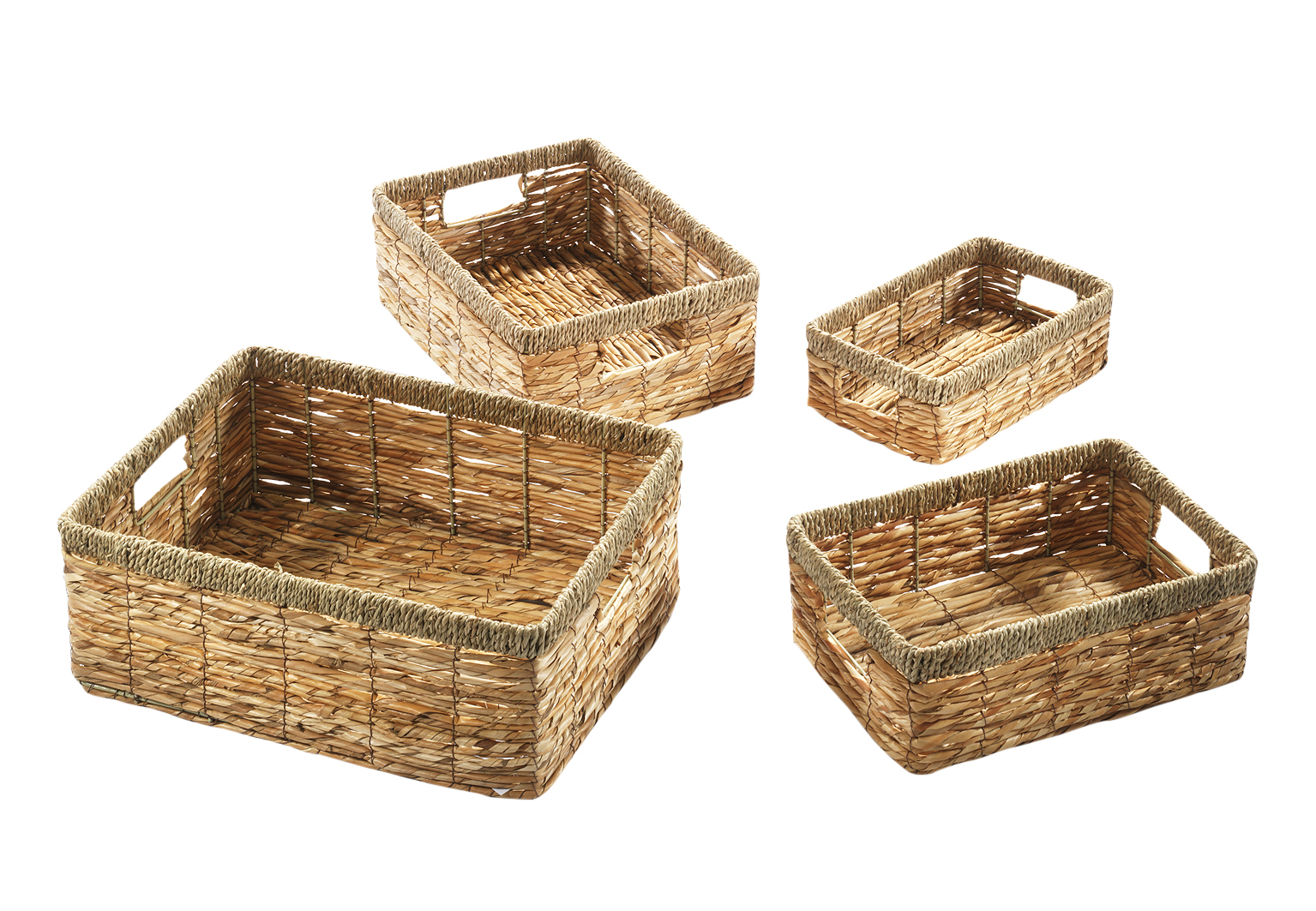 Regalkorb eckig aus Galangablatt auf Metallrahmen geflochten S/4